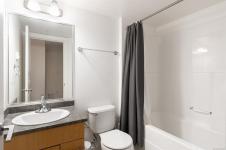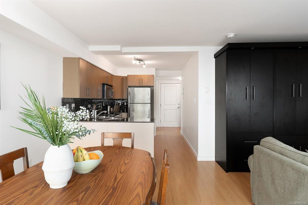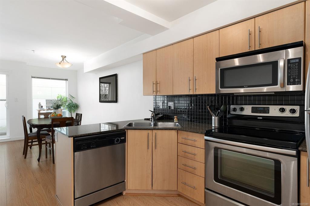 Welcome to The Martello in the heart of Esquimalt! This well-appointed 1 bed, 1 bath, 685 sqft second-floor suite offers a thoughtful floor plan with granite countertops, stainless steel appliances, in-suite laundry, and a Juliette balcony. Custom built-in cabinetry provides exceptional two-way storage. The expansive rooftop patio boasts sweeping views from the Olympic Mountains to Esquimalt Harbour, home of the Royal Canadian Navy’s Pacific Fleet — perfect for relaxing or entertaining. Pet- and family-friendly with no age, rental, or dog size restrictions, plus secure bike storage, dedicated parking, and separate storage. Just steps to parks, beaches, cafés, transit, and only 5 minutes to downtown Victoria. Built in 2010, this is exceptional value in a vibrant, evolving neighbourhood.