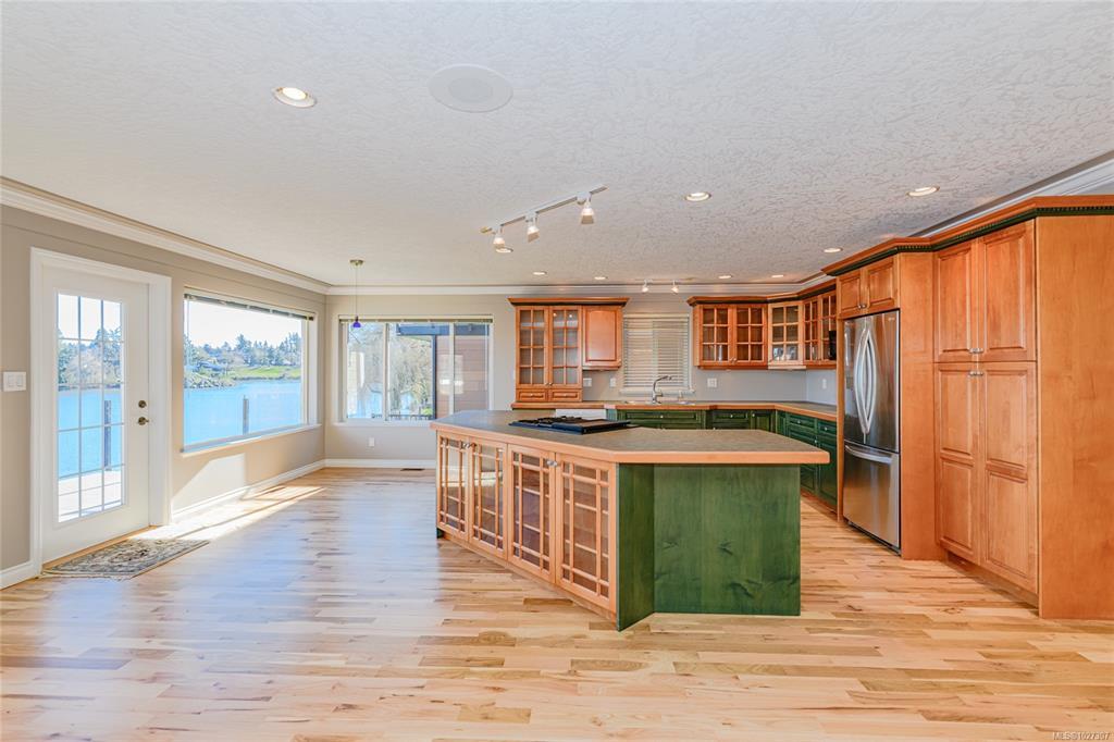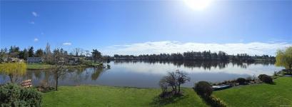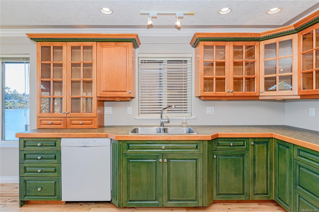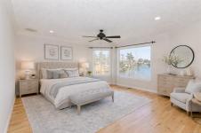 Behind the humble street appearance lies a sublimely situated and stunning waterfront oasis for those who love nature and desire a quiet peaceful lifestyle. The large view windows on both levels offer a bright living space to watch the wildlife. Boasting over 3900 sq ft with a main kitchen just made for entertaining, 4 bedrooms and a den/office, a second full kitchen on lower level, and tons of flex space it's perfect for the large family scenario. Features like immaculate just-refinished hardwood flooring throughout the main level area, stained glass touches, vaulted ceiling, house wide sound system and an spacious open floor plan make this home especially appealing. Brand new components include roof and gutters, heat and A/C pump, deck vinyl and glass railing, and complete inside and out paint. The 9452 sq ft lot flares out to a huge water's edge back yard. A superb opportunity to own your own personal paradise for well under the assessed value. Easy to view and available quickly!