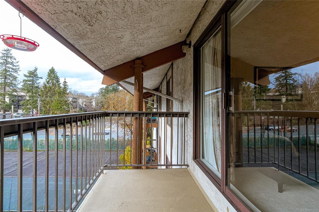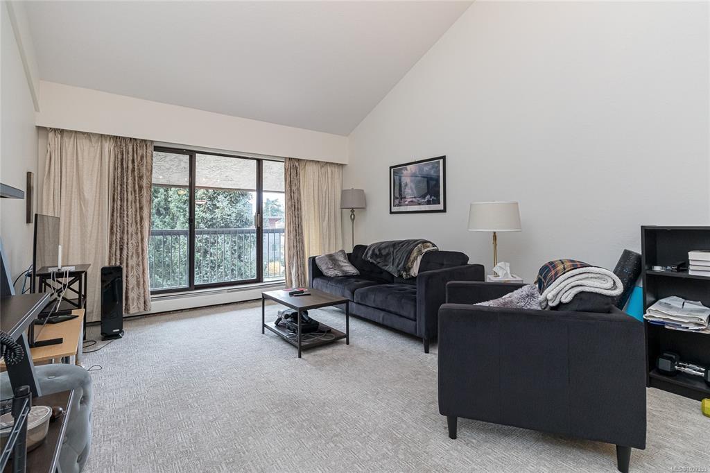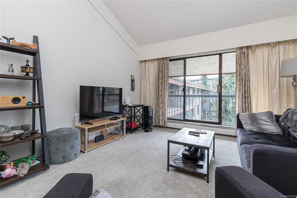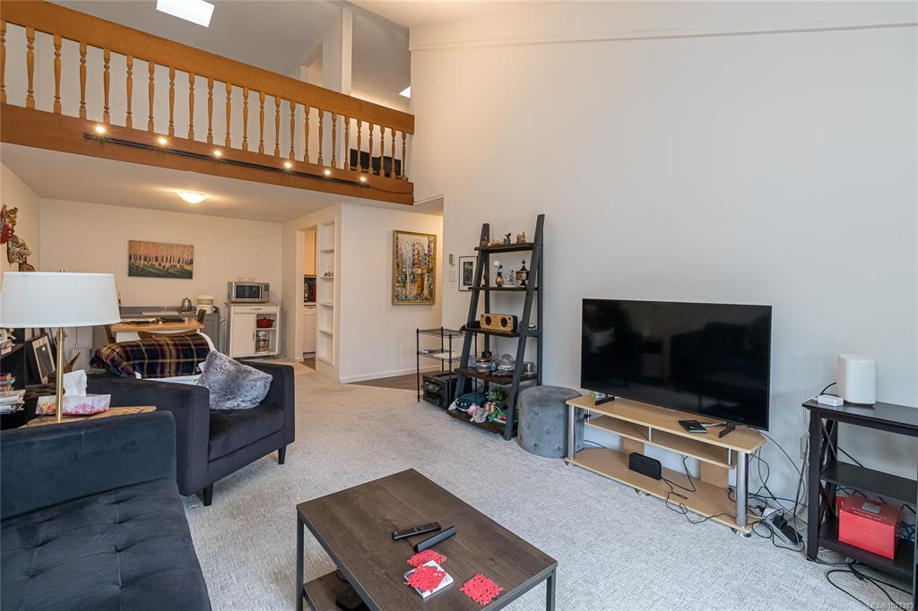 Bright and spacious top floor loft style two bedroom condo at Royal Woods! Offering 916sqft on the main with soaring 14-foot vaulted ceilings in the living room, a sunny 10x5 west-facing balcony perfect for evening sunsets, and a generous 14x11 primary bedroom with large walk-in closet. The 332sqft loft above features two skylights and flexible space, ideal for a second bedroom, home office, studio and additional storage. Recent updates include vinyl plank flooring and carpet (2022), a refreshed bathroom (2024), smart dimmable LED lighting, and fresh modern paint throughout. Complex set on nearly 5 acres in Saanich near Quadra/McKenzie, just steps to shopping, amenities, and direct transit to UVic right outside your door. Enjoy resort style amenities including indoor pool, hot tub, sauna, gym, workshop, and games room. Strata fee includes parking, storage locker, heat, hot water, and strong contingency funding. Exceptional value at $399,900 ($320/sqft!), $147,000 below assessed value!