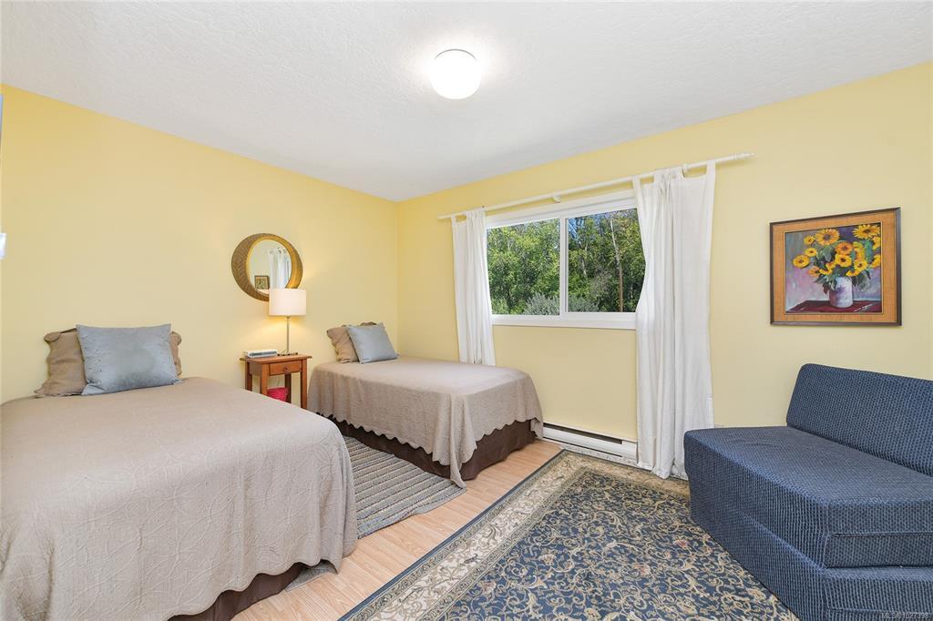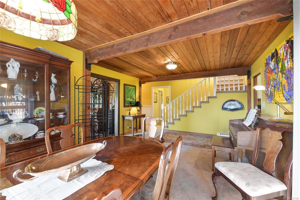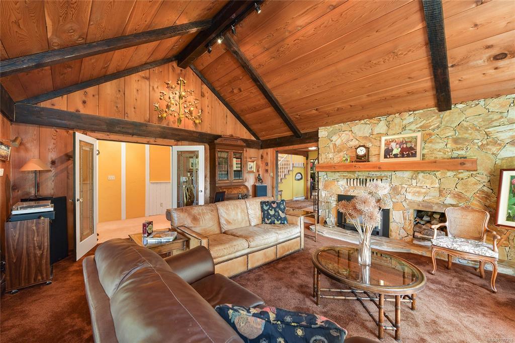 SAANICH PENINSULA COUNTRY RETREAT! Discover your very own sanctuary in the Mount Newton Valley on the beautiful Saanich Peninsula with this European styled home. The charm of exposed beams, vaulted ceilings, a stone fireplace, and leaded French doors create an inviting retreat that is awaiting your update ideas. This custom-built home features 4 bedrooms, 4 bathrooms, a primary bedroom on the main level, a separate dining area, a country style eat-in kitchen, a cozy family room with a wood stove, and a private patio overlooking your own magical forest. The property also includes a separate studio and retreat building which offers an array of flexible living options and space for the entire family. Lovingly landscaped gardens, fig/fruit trees, grapevines, vegetable gardens and open grassy areas surround the home, while the nearly 5-acre nature retreat offers creatively developed trails and the peaceful sounds of Graham Creek. This is a legacy property waiting for you and your family!