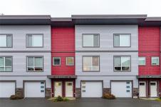Beautifully designed 3-bedroom, 3-bathroom in the sought-after Luxton Flats community, built in 2021 & located in the heart of family-friendly Happy Valley. Offering over 1,300 sq. ft. of well-planned living space, this home blends modern design w everyday comfort. Open-concept main level features 9’ ceilings & stylish kitchen w quartz countertops, subway tile backsplash, stainless steel appliances + gas range, flowing seamlessly into the dining & living areas—ideal for both entertaining & daily living. Step outside to a quiet balcony w natural gas BBQ hookup, perfect for morning coffee or year-round enjoyment. Upstairs, the spacious primary bedroom offers a walk-in closet & ensuite, second large bedroom, dedicated office/third bedroom & a full bathroom. Other features include ductless heat pumps, gas hot water, tandem 2 car garage, ample storage & direct access to a fully fenced yard—perfect for kids or pets. Convenient location close to parks, schools & the Galloping Goose Trail.