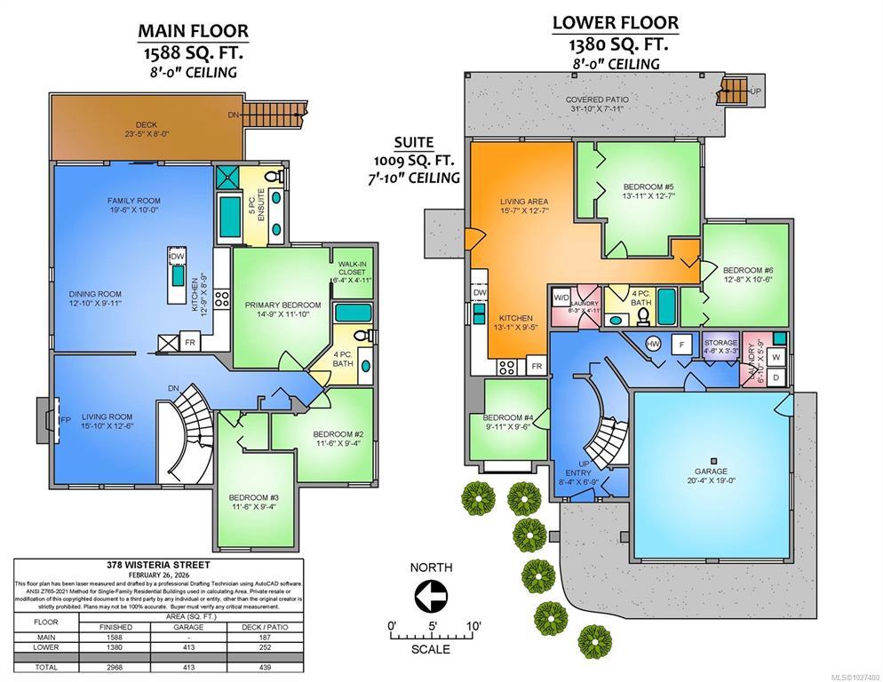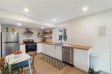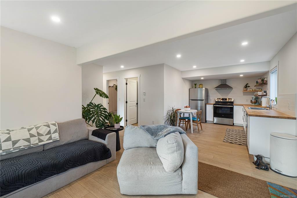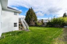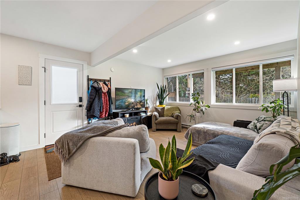 Tucked at the end of a quiet cul-de-sac on the ocean side of the highway, this beautifully updated home offers space, flexibility, and income potential. The main level features 1,588 sq ft with 3 bedrooms, 2 bathrooms, and a dedicated lower level office/den, including a spacious primary suite with walk-in closet and 5 pc ensuite. The new kitchen showcases stainless appliances, a centre island, pantry with pullouts, and opens to a sunny rear deck overlooking the generous backyard, perfect for kids and pets. Downstairs is a fully self-contained and legal 2 bedroom suite with separate entrance, laundry, power meter, and walkout access, ideal for extended family or rental income. Total finished area is 2,968 sq ft on a 10,307 sq ft lot with double garage. Extensive updates include newer roof, main level heat pump with A/C, new paint, flooring, and all plumbing replaced with PEX. A rare opportunity in a highly desirable neighbourhood just blocks to beach access.