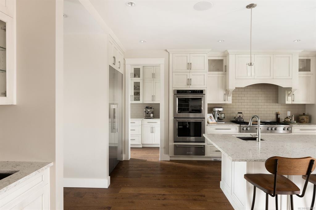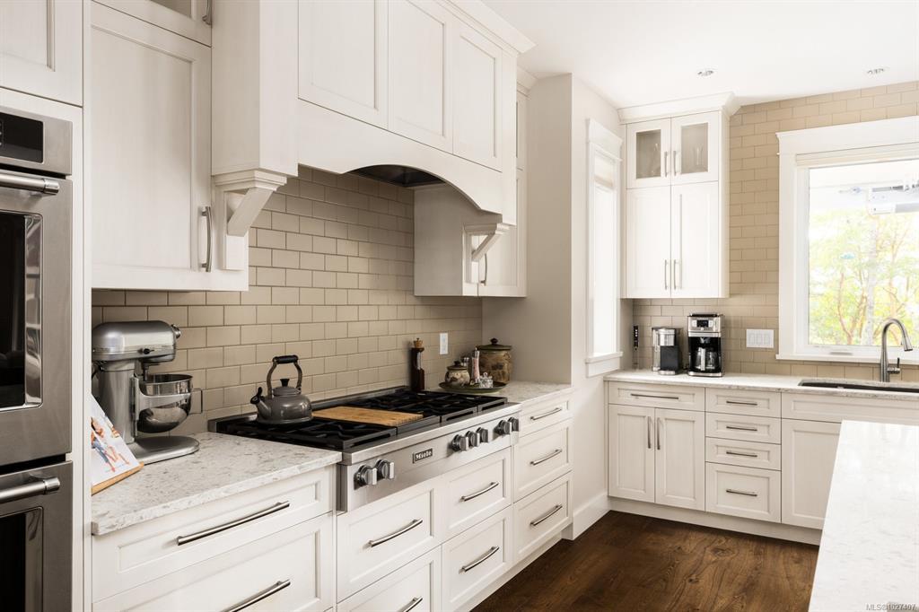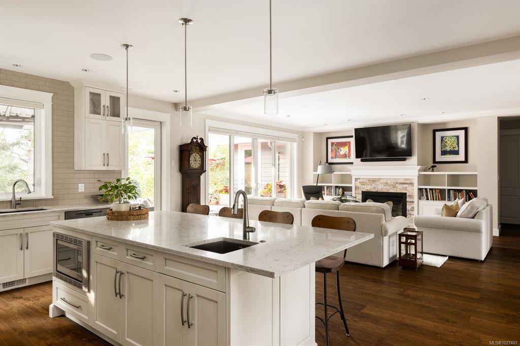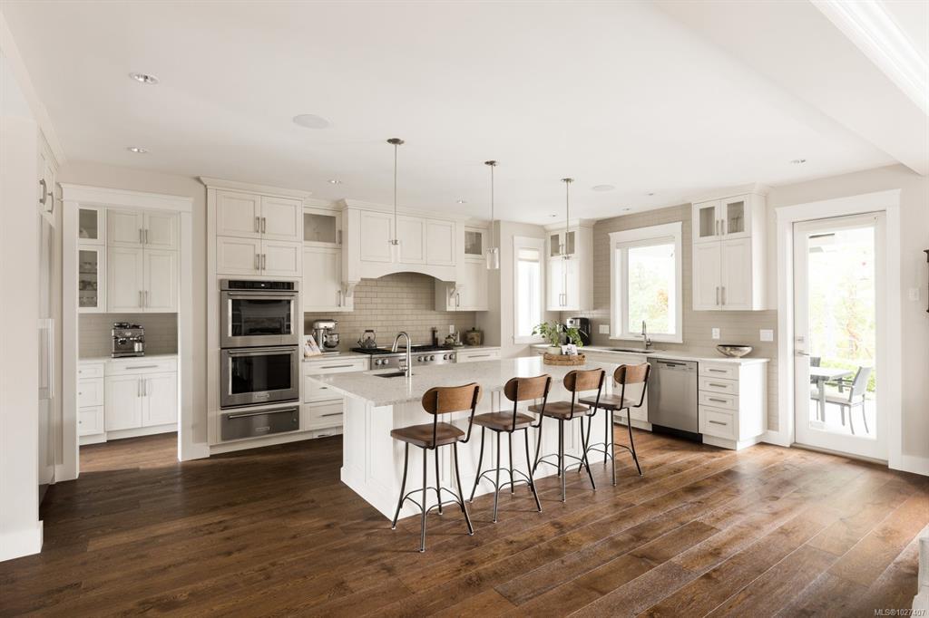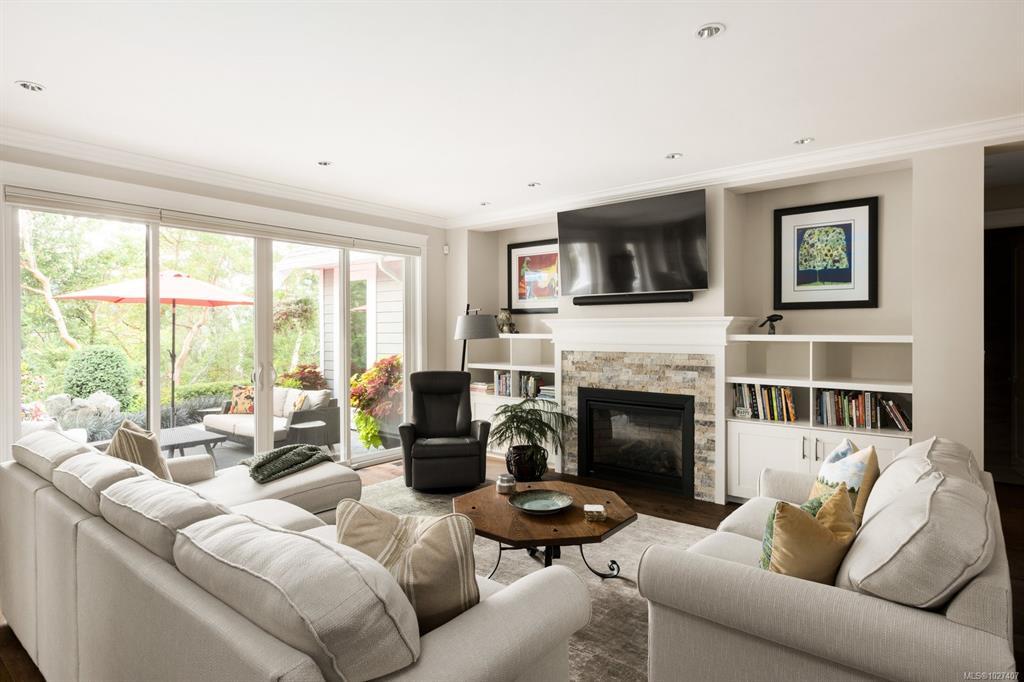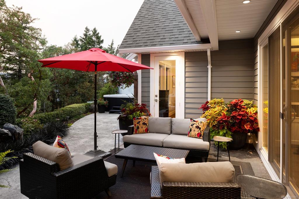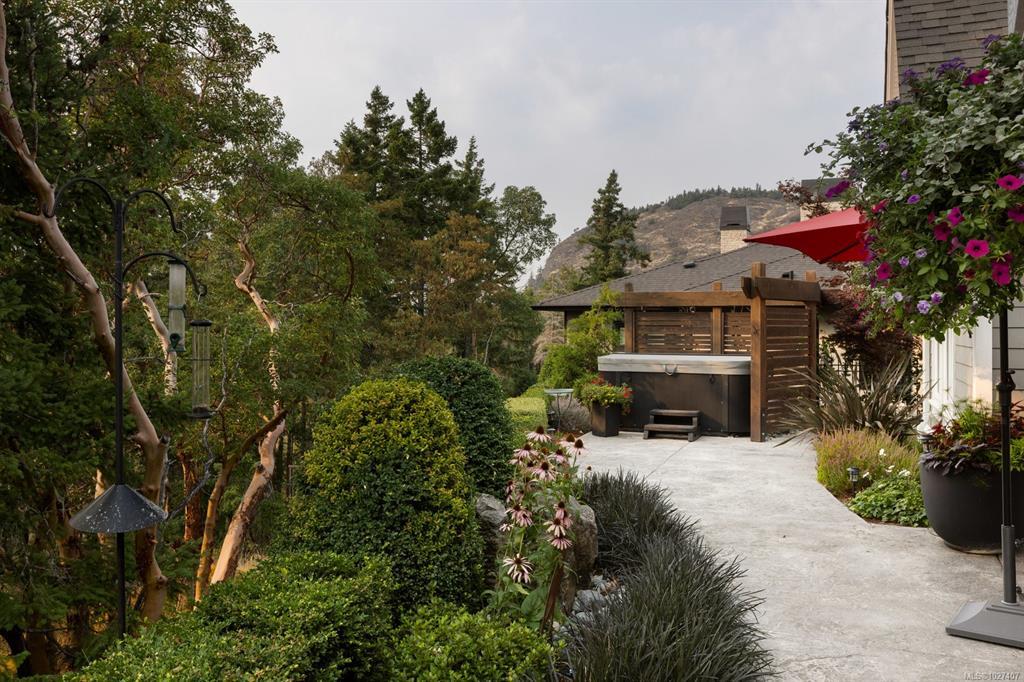 Welcome to 1484 Pebble Place, a distinguished Arts and Crafts residence tucked within the exclusive Cypress neighbourhood bordering Goldstream Provincial Park.Built by KC Custom Designs, this 4 bed/4 bath home blends timeless architecture with exceptional craftsmanship and thoughtful detail throughout.The main level showcases a chef-inspired kitchen with a Miele range, double wall ovens, oversized island, walk-in pantry, and separate dining room.The living room is beautifully anchored by a statement fireplace with custom built-ins, offering an inviting gathering space.The primary bedroom features a spa-like 5-piece ensuite,soaker tub,and seamless walkout to the expansive west-facing patio. Upstairs offers two additional bedrooms,a family room with wet bar,built-in office workspace, and a versatile bedroom/bonus rec room.Enjoy the heated covered outdoor dining area with built-in BBQ station or relax in the private hot tub overlooking the mountains. Individual Golf Membership available!