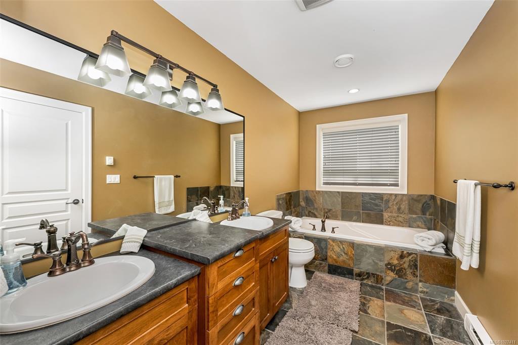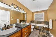 Exquisitely reimagined, this exceptional Bear Mountain residence offers refined living with a distinct resort-inspired feel. The home is anchored by a stunning $110,000 designer kitchen featuring a full Dacor appliance package, seamlessly integrated into a bright, open-concept layout & complemented by an elegant stone fireplace. The entire upper level is dedicated to a luxurious primary retreat, complete w/tranquil, spa-inspired en-suite. A versatile 1,000 SqFt two-bed suite w/ in-suite laundry & private patio, ideal space for guests, extended family, or flexible living arrangements. Thoughtful upgrades include a double garage, central vacuum, gas and hot tub rough-ins, and a new high-efficiency heat pump w/future expansion capacity. Ideally located in the prestigious Bear Mountain community, just steps from world-class golf, tennis, dining, cafés, and endless hiking and mountain biking trails. An exceptional offering where comfort, style, and resort living come together seamlessly.