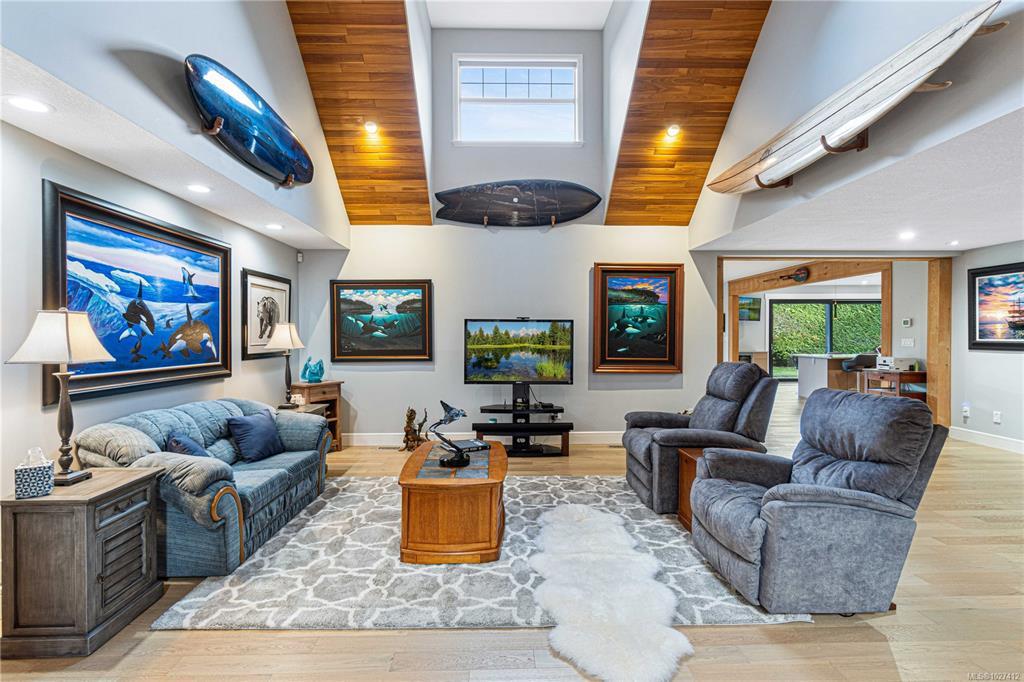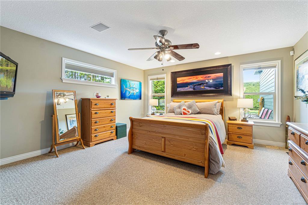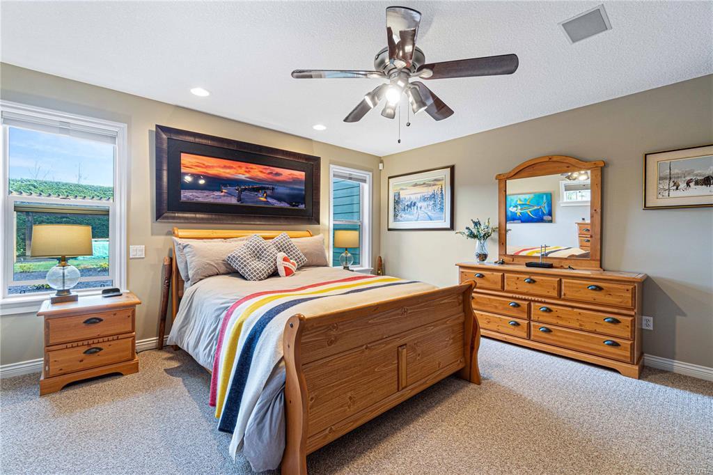 Offered for the first time, custom built in 2004, this River’s Edge Estate sits on 3.14 fenced acres and showcases a spectacular recently added gourmet chef’s kitchen featuring a Sub-Zero fridge, Wolf double wall ovens, cooktop & built-in microwave, Fisher Paykel dishwasher drawers, quartz counters, reinforced pot drawers, and a beverage fridge. Engineered wood floors, a propane fireplace with gorgeous stonework, and two massive 11’6” patio doors anchor the main level. The primary suite offers heated tile floors in the ensuite along with an extra large steam shower. You’ll also find a family room, office with French doors, two heat pumps, full security system, stamped concrete patio with hot tub and an outdoor kitchen featuring a pizza oven, BBQ, and smoker. A powered gate, pond, raised garden beds, fruit trees, and a large shop with studio suite (separate septic, HWT, shop 2pc bath, suite 3pc bath with heated floors) complete this rare find.
