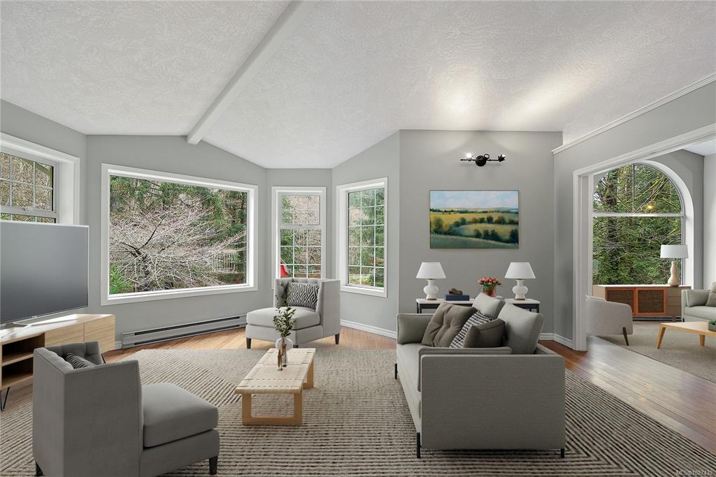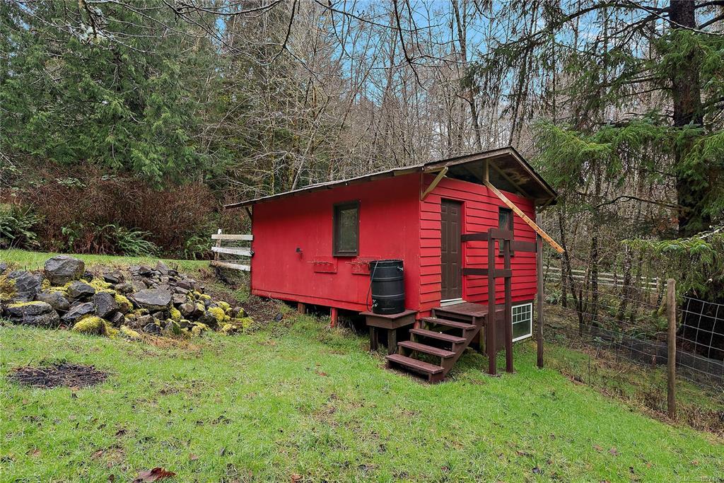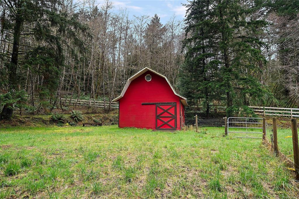 Lovely East Sooke estate on nearly 2.5 level acres mins to Anderson Cove. Picturesque setting with rolling pasture, burbling creek, 2-stall barn & greenhouse in a peaceful rural location close to trails & schools. This 3,776 sqft home offers 4 bedrooms, 4 baths with a functional layout ideal for family living & entertaining. Grand 2-storey entry with winding staircase to upper level sets the luxurious tone. Main level features spacious open rooms, vaulted ceilings & wood floors. Spacious living room with cozy fireplace, family room open to large eating area & kitchen, plus separate formal dining room & powder rm. Upper level boasts a very large primary suite with, sitting room, updated spa-like 5 pc ensuite, walk-in closet & private balcony, plus 2 additional bedrooms & 4 pc bath. Lower level offers a generous 1 bed in-law suite. Additional features includes large single car garage/workshop, barn with durable Gabro roof & multiple storage sheds. Enjoy the peaceful East Sooke lifestyle!