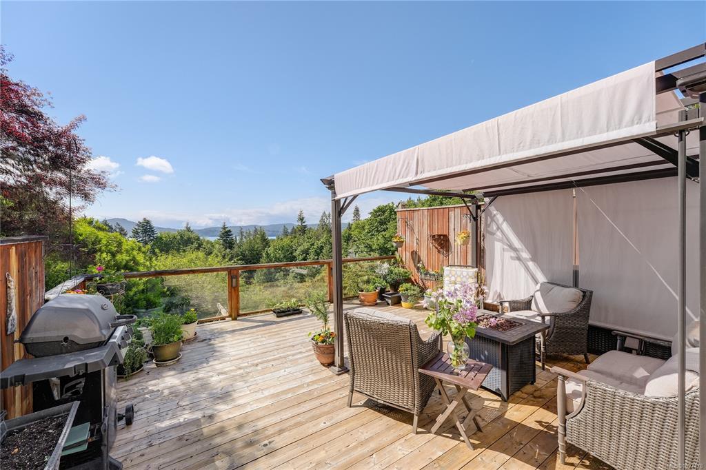 Where Style Meets Sunshine - Duplex Living in Sunny Saseenos! Enjoy stunning S-facing ocean & mountain vistas from this beautifully updated half-duplex unit located on the Victoria side of Sooke! The main level features bamboo flooring, fresh paint, & an airy, open layout. Bright kitchen w/SS appliance package. In-line dining area leads to spacious living room that soaks in the views. Upstairs offers cozy carpet & a generous primary bedroom w/3-pce ensuite. Relax in the private front courtyard w/water feature or entertain on the sun-drenched back deck overlooking the basin. Additional highlights include a single garage & access to massive common field w/ fire pit - perfect for gatherings, play, or pets. The duplex is set on an acre lot in a quiet, convenient, location near shops, dining, & hiking trails, this home is ideal for families or retirees alike! A rare opportunity to own a stylish, move-in ready home w/unbeatable views & a true connection to nature. Don’t miss it!