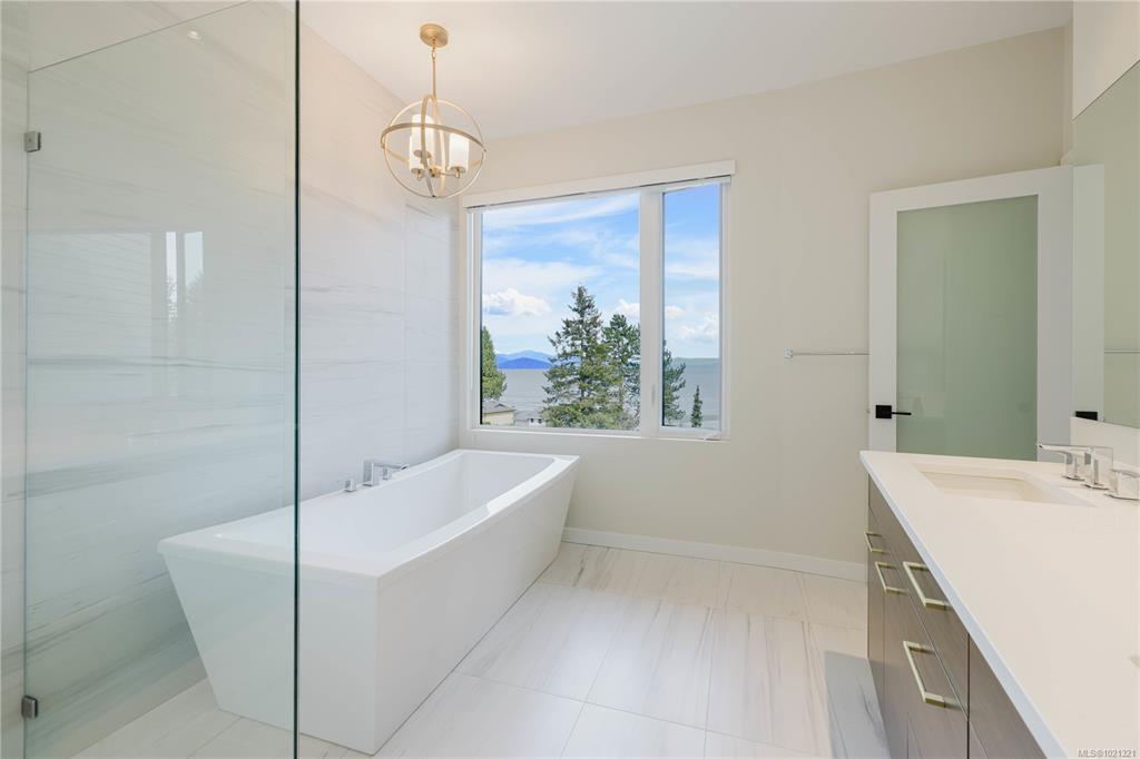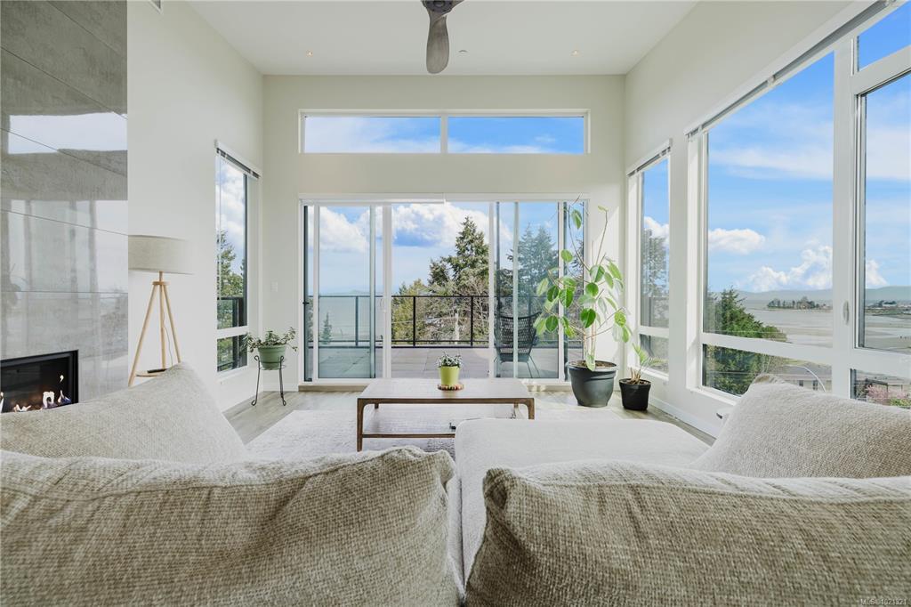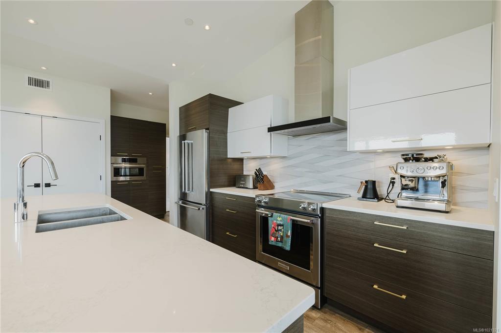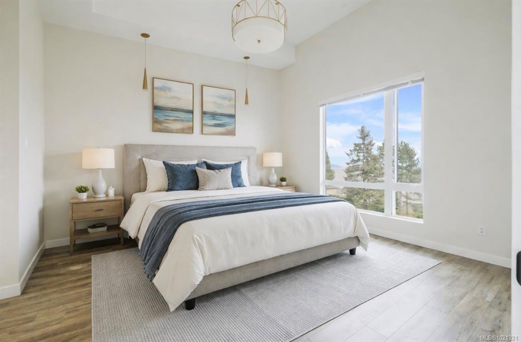 Welcome to elevated coastal living in the heart of Parksville. This beautiful 2 bed / 2 bath Oceanview penthouse is perched on the top floor of “100 Lombardy,” a quiet 2019-built boutique building with only 29 units. Enjoy 1,528 Fin Sq Ft of bright open concept living, vaulted ceilings, expansive windows, and a 234 Sq Ft balcony overlooking Parksville Bay. The quartz-appointed kitchen features stainless steel Bosch appliances, pot lighting, and a large island with bar seating. The primary suite offers a grand walk-in closet and a spa-style ensuite with dual vanities, soaker tub, and glass shower. A flex room adds versatility for storage. Built with sound-insulated construction and a strong sense of community, residents enjoy secure underground parking, low strata fees, and pet-friendly living (with approval) - All within easy walking distance to the boardwalk, beach, and downtown amenities.