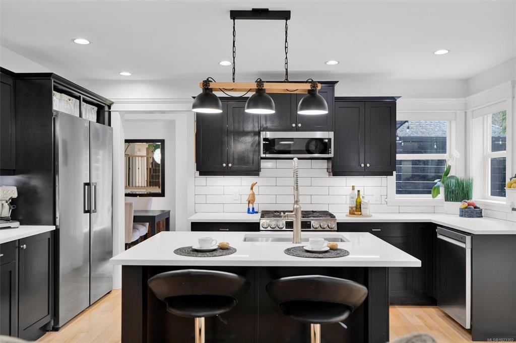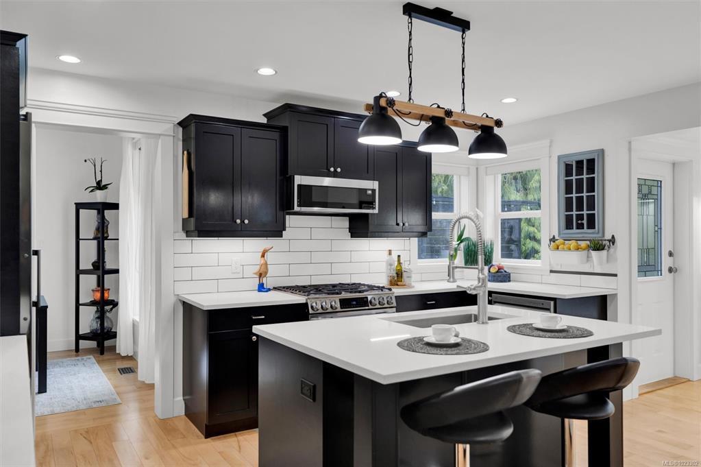 Extensively renovated, the kitchen showcases quartz counters, stainless steel appliances, gas range, eating nook, large island & modern island lighting. The brand-new full-height walk-out lower level offers a massive media/games room, 3-piece bath, separate entry & workshop that could convert to a 4th bedroom, creating suite potential. Enjoy a sunny fenced backyard perfect for kids & pets, a large deck with gas hookup & privacy fencing, fresh paint inside & out, treated roof, new porch, shed & updated landscaping. Move-in ready.