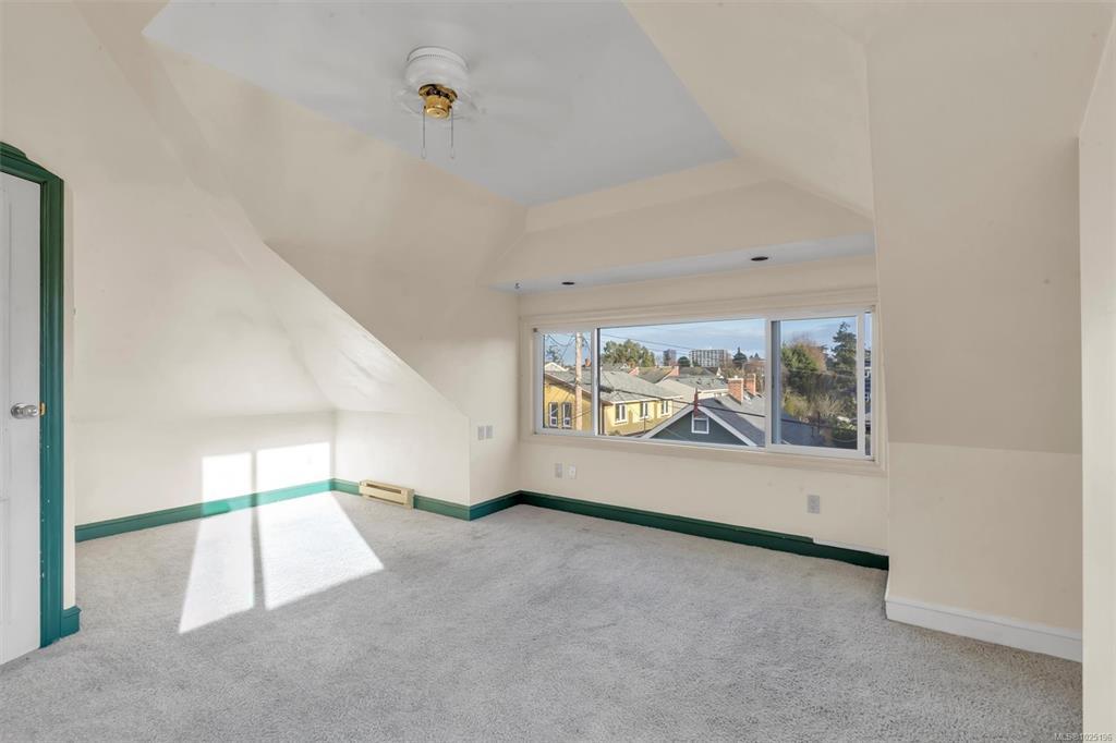 Your chance to get into an iconic neighbourhood awaits! Perfect for first-time buyers or young families, this home offers exceptional value and the opportunity to create your dream space in sought-after James Bay. Ideally located just off Dallas Road, perfectly positioned between Fisherman’s Wharf and Ogden Point, you’ll enjoy oceanfront walks, cafés, and waterfront living right at your doorstep. This charming 3-bedroom townhouse is full of character, featuring 10-ft ceilings and large bay windows overlooking a quiet one-way street. The dining area flows off the functional kitchen into the bright living space. The main level offers two bedrooms and laundry, while upstairs is a private primary retreat with a sun-drenched patio. Includes off-street parking, and storage locker. Walk to downtown and everything James Bay has to offer.