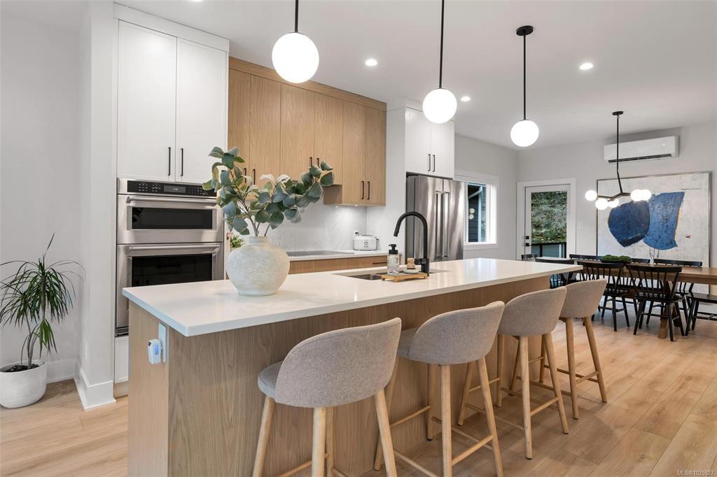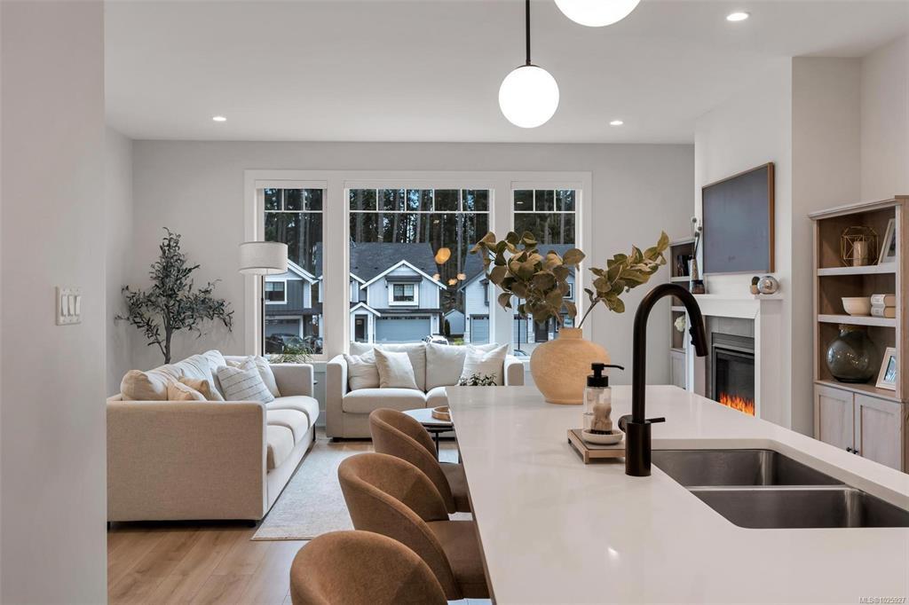 OPEN HOUSE SATURDAY MARCH 7TH 1:00-3:00PM. Nestled in the highly sought-after Royal Bay neighbourhood, this stunning 5-bedroom home offers comfort, style, and versatility, complete with a self-contained two-bedroom suite—ideal for extended family or mortgage helper potential. The thoughtfully designed open-concept layout provides seamless flow between the living, dining, and kitchen areas, perfect for entertaining and everyday living. The main level also features a spacious primary suite with walk-in closet and ensuite, plus two additional bedrooms. Recent upgrades include brand new solar panels, gutter guards, and an easy-care synthetic lawn in the backyard. Additional highlights include a double garage, natural gas hot water on demand, heat pump with A/C, and ample parking. Quietly located near the end of a no-through street, just steps to trails, shopping, restaurants, and the beach.