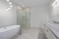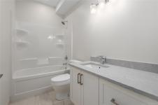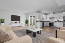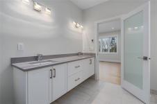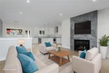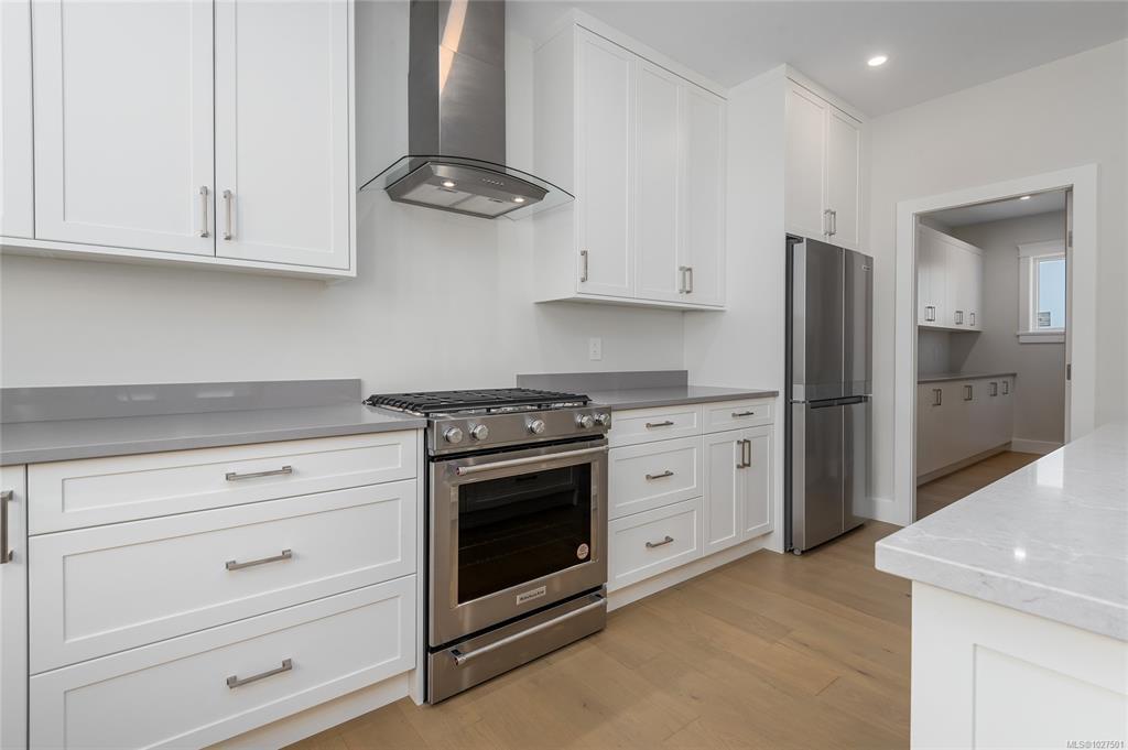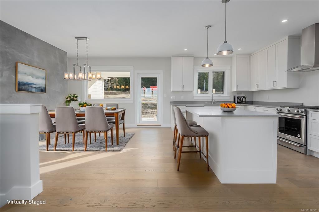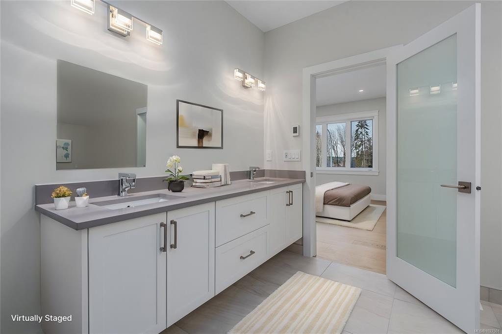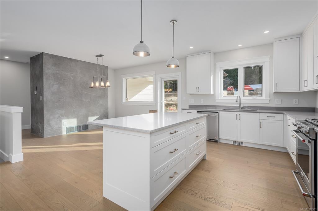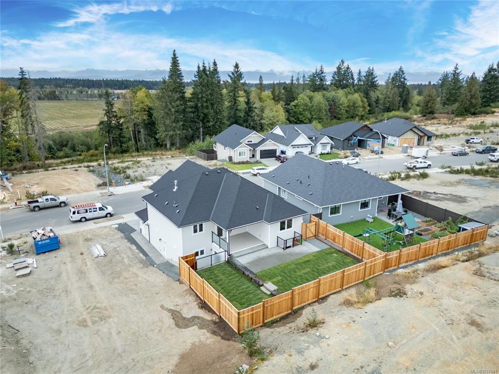 New construction, 3,023 sq ft, 2 levels, Crown Isle Blvd, Courtenay. Coastal Craftsman exterior, hardie siding, glass railing balcony, 413 sq ft double garage w/ EV charger wiring. BC Energy Step Code 4, Zero Carbon EL4 achieved. EnerGuide 61 GJ/yr vs 92 GJ/yr typical new build. Warranty: 2 yr materials & labour, 5 yr building envelope, 10 yr structural. Main floor: open kitchen, dining & living, gas FP w/ micro cement finish, covered decks front & rear, island, stone counters, butler's pantry & KitchenAid appliances. Primary bed: 5pc ensuite w/ heated tile, soaker tub, dual sinks, quartz & WIC. 2nd bed & 4pc bath. Samsung steam laundry included. Lower level: 3rd bed & 4pc bath. Legal suite: private entrance & patio, separate hydro, dedicated mini split, Hisense kitchen, 4pc bath, in suite laundry, 1 bed & den, sound insulation between suite & main home. Main home: ducted heat pump HVAC. Fully fenced, established sod. Minutes to Crown Isle Golf, schools, hospital & shopping.