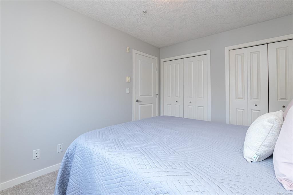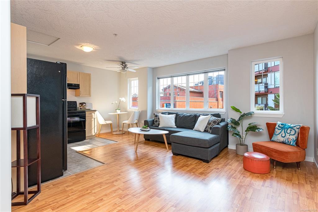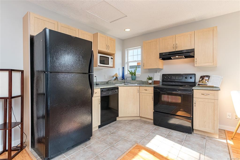 Tucked into a boutique 10-home complex in the heart of Downtown Langford, this bright 2-BR condo offers exceptional value for first-time buyers ready to make their move. The welcoming open-concept living space flows from the kitchen with maple cabinetry & ample counter space into the dining & living areas. The thoughtful layout offers excellent separation between living & sleeping spaces with 2 spacious bedrooms featuring brand-new carpets. The primary includes a double closet while the 2nd bedroom provides flexibility for a home office, guest space or kids room. The full bathroom offers great natural light & a deep tub. Enjoy your private patio for morning coffee or summer BBQs. In-suite laundry, dedicated parking, professional management & pet-friendly strata add convenience. Location matters - and this one delivers. Walk to shops, restaurants, transit & trails. Freshly painted & available for immediate possession this is your opportunity to build equity in a vibrant community.