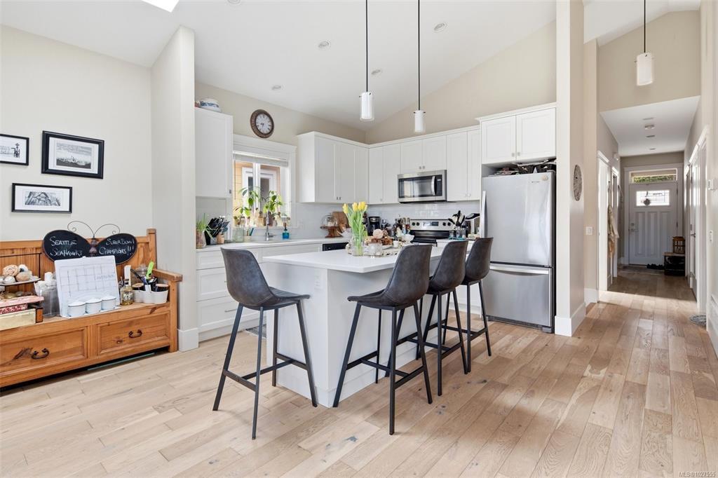 OPEN HOUSE SATURDAY MARCH 7TH FROM 1:00-3:00PM. Elevate your lifestyle in this newly built residence where vaulted ceilings and an airy, open-concept layout redefine modern comfort. Spanning 2,577 square feet, the main level centers on a culinary-grade kitchen featuring quartz surfaces, a pantry, and a social eat-at island—all framed by durable engineered wood flooring. Retreat to the primary suite, a private sanctuary complete with a tiled walk-in shower. Outdoor living is effortless on a deck designed for quiet mornings, while the walk-out lower level offers a versatile bonus room and extensive storage for an organized lifestyle. Efficiency meets style with forced-air heating and timeless tile finishes. Located steps from tranquil walking trails and Country Grocer, this home offers the perfect balance of seclusion and convenience. The partially fenced yard overlooks a quiet community walkway, emphasizing the move-in-ready quality of this well loved home.
