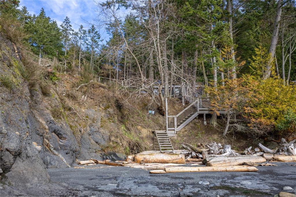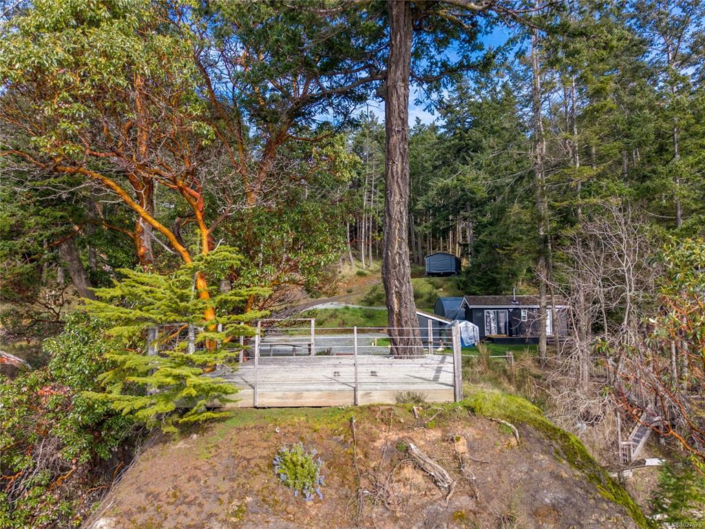 OCEAN FRONT. Rarely available 1.45 acre, south facing waterfront property with direct beach access on North Pender Island. The lot is mainly cleared, fully serviced with underground utilities and connected to the Magic Lake Estates water and sewer systems, no septic or well required, making it truly ready for you to build your dream home. In the meantime, enjoy sweeping ocean views from the viewing deck perched on the bluff. A solidly constructed staircase providing easy access down to the beach, A small yet fully equipped cabin offers a modern, comfortable accommodation while you plan your future build. Thieves Bay Marina is just a short stroll away, adding to the convenience and lifestyle appeal of this exceptional property. Please do not walk the property without an appointment. Please do not walk on property without a confirmed appointment.