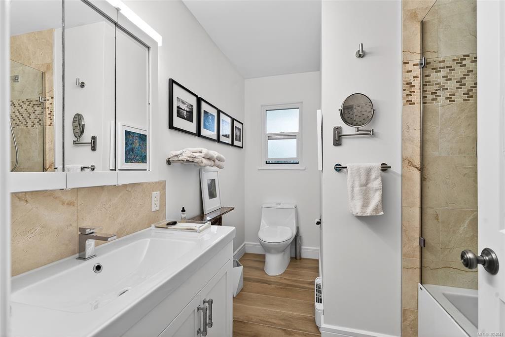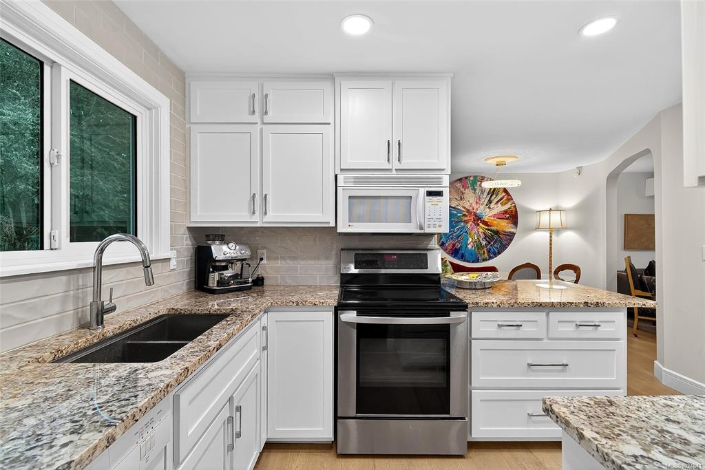 The Parksville lifestyle, done right. Set on a generous 8,712 sq ft lot at the quiet end of a cul de sac in Parksville, this beautifully updated 3 bed, 2 bath rancher delivers effortless West Coast living. A short walk brings you to the beach and boardwalk, yet the setting feels private and peaceful. Inside, light pours through a stunning picture window, filling the home with an airy, understated elegance. The kitchen features custom cabinetry and granite counters, while the main bath offers a hotel inspired finish with sleek glass details. Major upgrades are complete with new windows and doors, flooring, heat pump, and hot water tank. Step outside to a new deck, fully fenced yard, pear and fig trees, and room for pets or play. Double garage with workshop/officeflex space adds flexibility. Simply move in and enjoy the lifestyle. Beach close. Cul de sac quiet. Exactly where you want to be.
