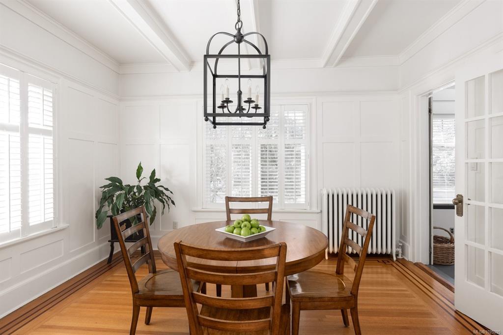This picturesque home sits on a well maintained, mature lot on one of South Oak Bay’s most coveted streets. Rich in character, it features a large entry hall with decorative fireplace, wainscotting, stained glass windows, gorgeous oak floors, coffered ceilings, French doors and generously sized principal rooms. The inviting living room with gas fireplace flows into a separate formal dining room and cozy sunroom. The bright eat in kitchen with ss appliances and gas stove, 3 bedrooms, 1½ bathrooms, complete the main level. Upstairs, a bonus room offers a loft style bedroom or flexible space for studio, or home office with attic access. The lower level includes an additional bedroom, bathroom, laundry, and ample storage or hobby space with potential for further enhancements. A timeless home in a premiere location close to Oak Bay Marina, Oak Bay Village Shops, local public and private schools, Willows Beach and Windsor Park.