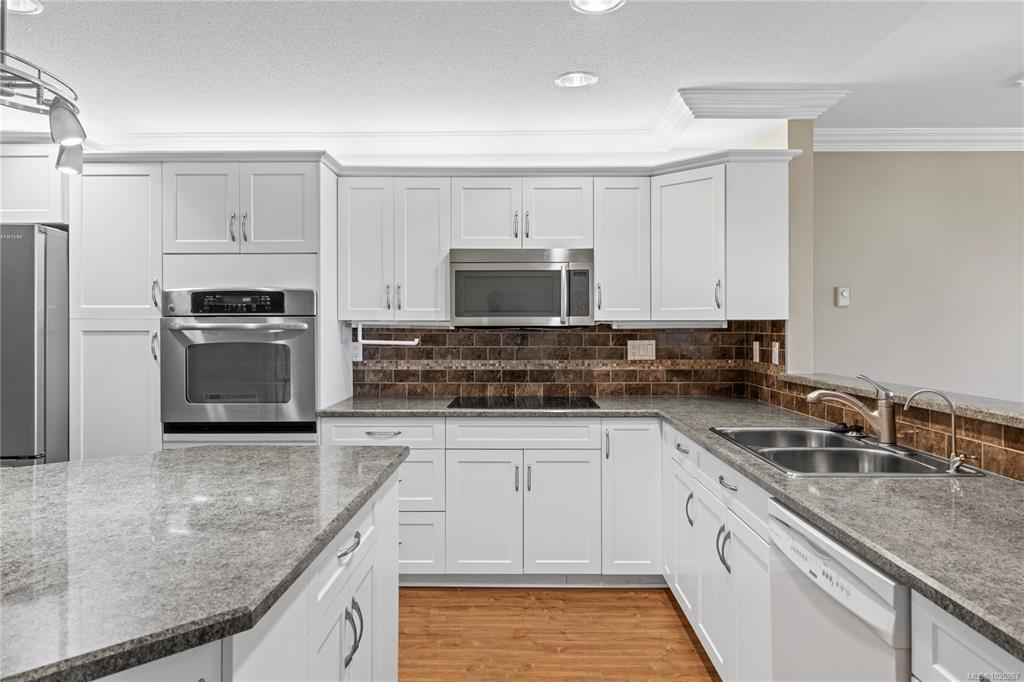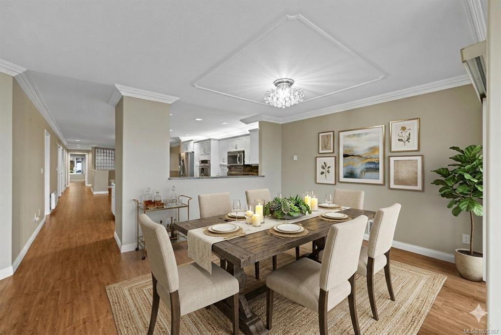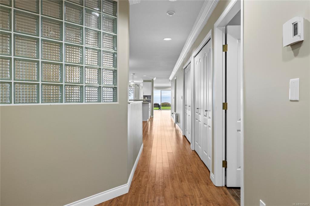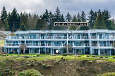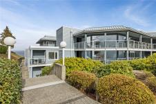 This beautiful 2-bedroom, 2-bathroom condo in The Crescent offers stunning panoramic views of the ocean and coastal mountains. Beautifully maintained, this home offers a spacious layout with lots of light and ocean views from the main living areas, patio, and primary bedroom. The generous kitchen features a large island and updated appliances, perfect for cooking and entertaining. The comfortable living room has a gas fireplace and large windows. The primary suite includes patio access, a walk-in closet, and a five-piece en-suite. Residents will enjoy one-level living within this gated 55+ community, which features a beautifully landscaped rooftop common garden area. Within walking distance to the beach, trails, golf, and shopping, this condo combines comfort, convenience, and breathtaking views in a prime Qualicum Beach location. Additional conveniences include a private storage area near the unit entrance and underground parking.
