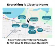 LOCATION, LOCATION, LOCATION and a feeling you’ll never want to leave. Just a 3 minute stroll to Parksville’s sandy beach and the heart of the Community Park. It has lived to the sound of the ocean tides, playground laughter, summer concerts and fireworks lighting up the sky. Thoughtfully updated with a new roof (2024), heat pump (2022), hot water tank (2022), eavestroughs (2021) and Bosch dishwasher, it’s ready to begin its next chapter. With Englishman River trails at your doorstep, the ocean just moments away, and a yard that has held years of laughter and quiet reflection, this home offers something rare, a life beautifully lived. It’s where community and nature meet, where days feel lighter, and where memories are made without effort. More than walls and a roof, this is a place to put down roots, to grow, to gather, and to truly feel at home.