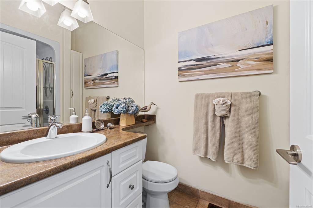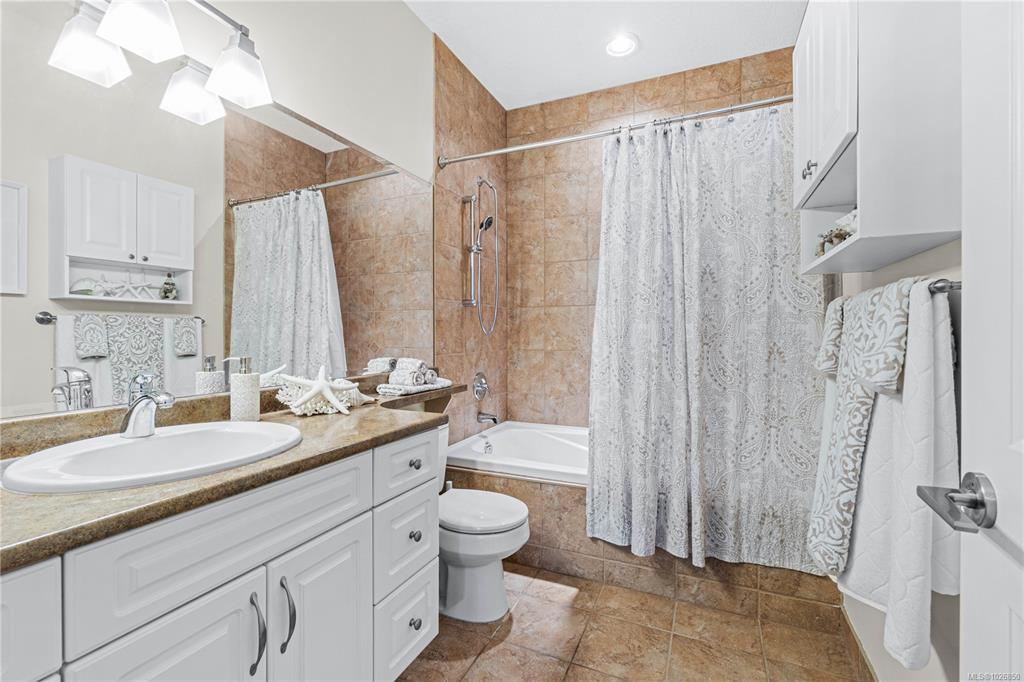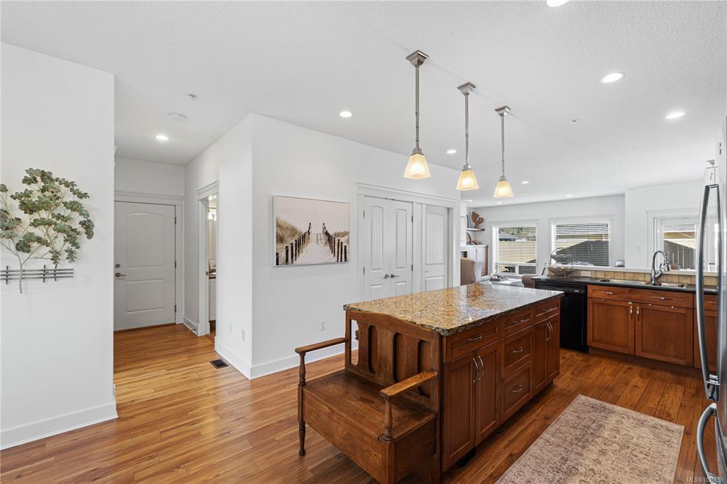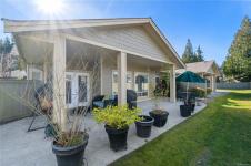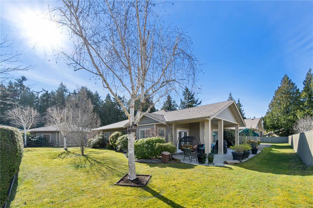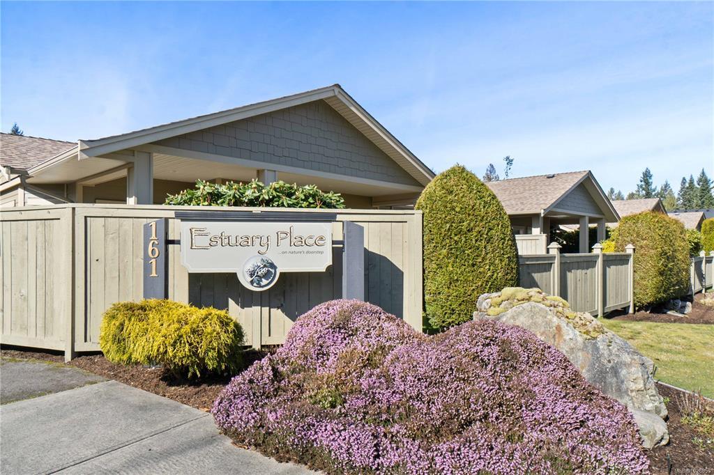STYLISH PATIO LIVING IN AN UNBEATABLE LOCATION. This beautifully maintained home in sought-after Estuary Place offers effortless living just steps to the Englishman River Estuary, parks, transit, shopping & the beach. Enjoy a sunny front yard south-facing covered patio and a private extended outdoor backyard retreat with gas BBQ hookup, perfect for relaxing or entertaining. Inside, 9’ ceilings and oversized windows fill the open kitchen, living & dining space with light. The upgraded kitchen features rich wood cabinetry, granite counters & a generous island. The spacious primary suite opens to the patio and includes a walk-in closet & 4pc ensuite. A second bedroom, full bath, laundry room & extended garage with storage complete the layout. Energy-efficient, clubhouse access, ample parking, no age limits, 1 pet allowed, an exceptional lifestyle opportunity.