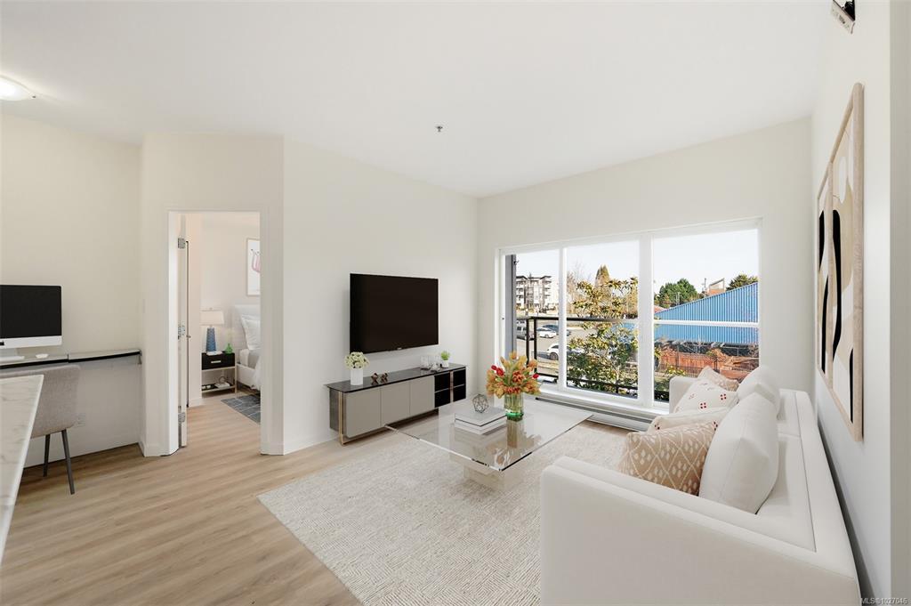 Welcome to this beautifully updated 2-bed, 2-bath home in the heart of Cedar Hill! Tucked away on a quiet street, this bright and inviting residence offers the perfect blend of comfort and convenience. Featuring high ceilings and a spacious open-concept layout. The kitchen has been thoughtfully refreshed with new white cabinetry and modern countertops, complemented by brand-new flooring and a fresh coat of paint. Enjoy the added bonus of a dedicated office nook—perfect for working or studying from home—as well as a private balcony for relaxing outdoors. Additional highlights include in-suite laundry, secure bike storage, and 1 LCP parking space. Just steps from local cafés and restaurants, Thrifty Foods and Fujiya, you’ll love the walkable lifestyle. Convenient bus routes provide easy access to UVIC, Camosun and downtown for students, professionals, or investors alike. A fantastic opportunity to own a move-in-ready home in one of Victoria’s most desirable neighbourhoods!