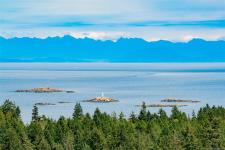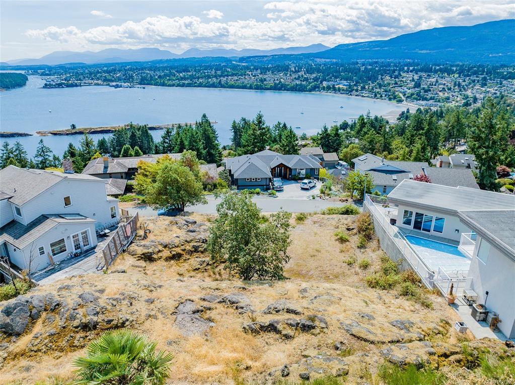 Spectacular views abound from this magnificent setting atop Canterbury Crescent, one of Nanaimo's signature neighbourhoods. Panoramic ocean, city and mountain views unfold from this rare south-facing property overlooking Departure Bay and its surrounding area, with vistas to Newcastle Island and downtown Nanaimo. Mt Benson will be framed like a postcard from every window as part of the future design for your new, custom built home. With 11528sf of property size to create your perfect residence, your creativity will soar. The lot is gently sloped to a large bench within the lot. Drive through on the circular, one way road and note the calibre of homes. The location is proximate to parks, beaches and beach-side cafes (The Drip) and food trucks, ferries, shopping, and schools. The zoning is R5 which under new guidelines permits up to 4 dwellings. Water, sewer, and storm run to the property edge. All measurements are approximate and need to be verified if important.