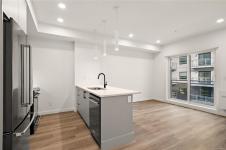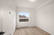 Move-In Ready at The Proxima!! Welcome to Unit 412 in the Adamo building located off Esquimalt Road in the heart of Esquimalt Village. This efficiently designed 1 bed, 1 bath unit offers 550 finished square feet perched up on the 4th floor in the Adamo building for ample natural light. Finished in the lighter Lumen colour scheme, the interior feels bright and airy, pairing clean, contemporary tones with quality craftsmanship. Built by award-winning GT Mann Contracting with interiors curated by Spaciz Design, the home features quartz countertops, an eat-in kitchen island, premium appliance package, fireplace, and a heat pump with cooling for year-round comfort. Residents enjoy access to thoughtfully designed amenities including a fully equipped gym, atrium, & courtyard. Just steps to Saxe Point Park, local breweries, Esquimalt Market, shopping, & Archie Browning Sports Centre, this is walkable living w/ everyday convenience. Secure underground parking & storage included.