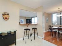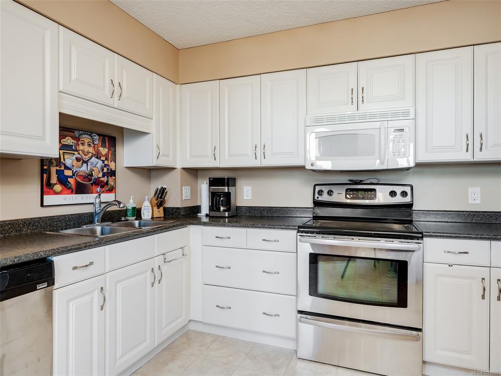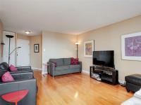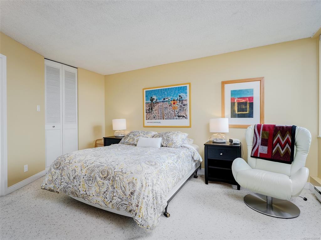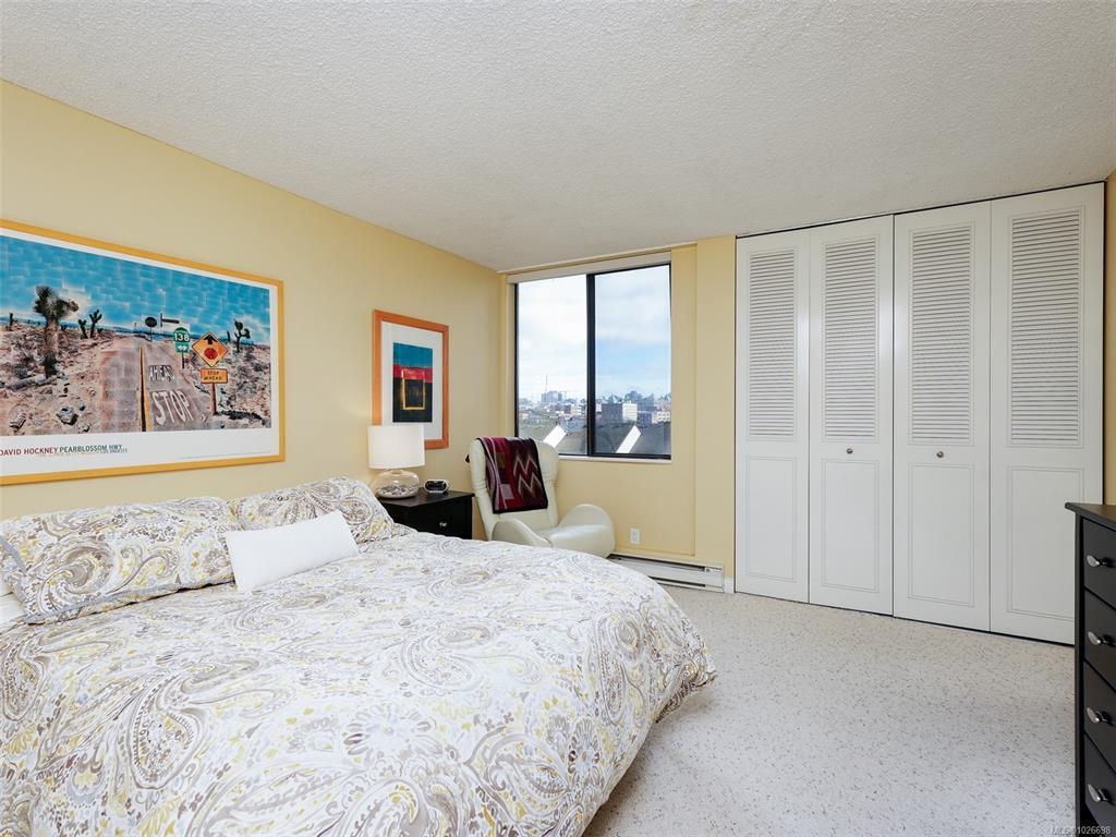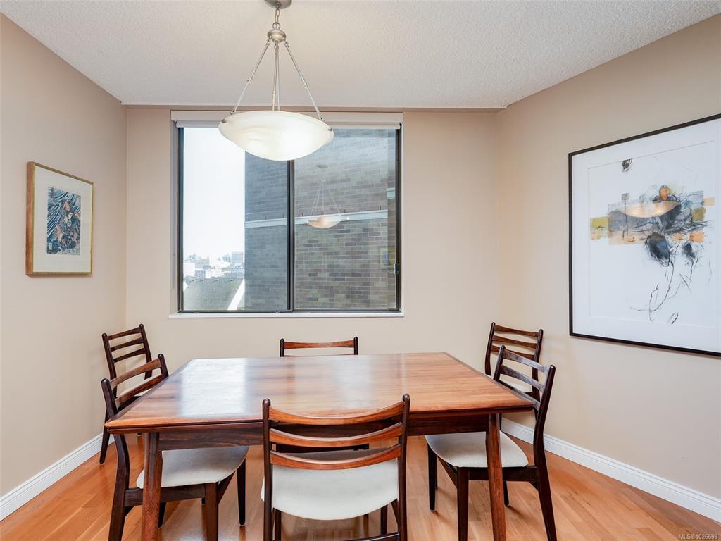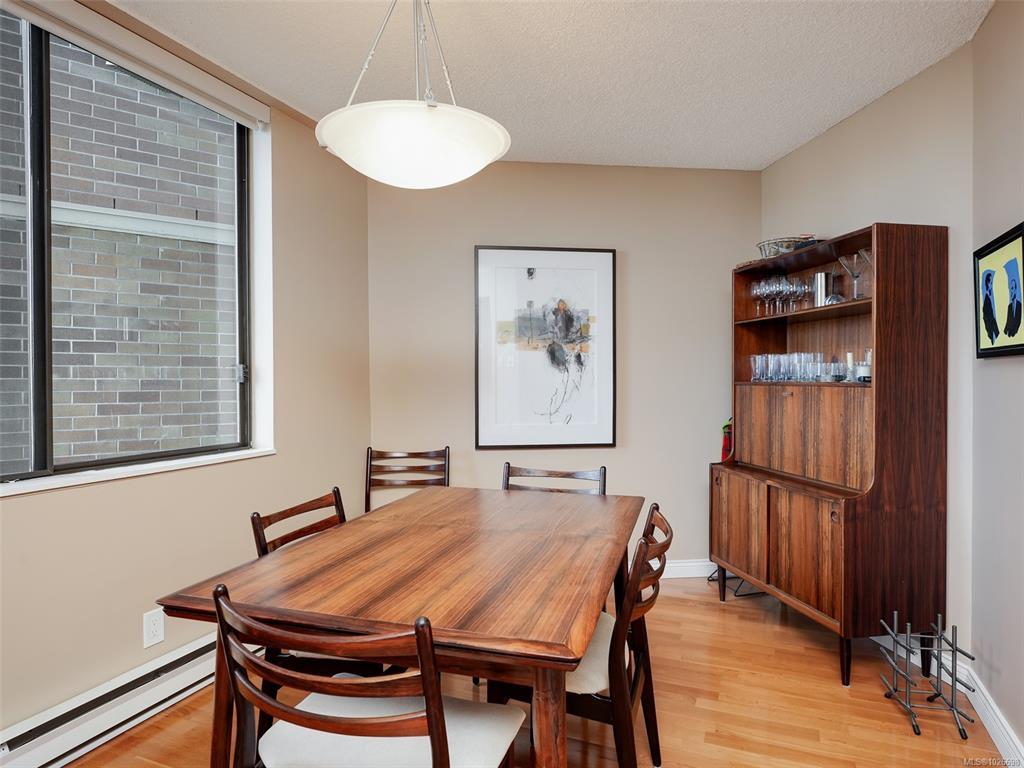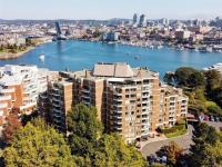 LAUREL POINT CONDO WITH OCEAN VIEWS. A highly coveted luxury condo complex in the heart of James Bay. Two bedrooms and two bathrooms offering a spacious living space with beautiful engineered hardwood flooring. The kitchen has newer appliances and bar seating, separate dining area and a living room with access to your covered balcony with a view of the pool and the harbour. The primary bedroom features a walk-in closet and a 4 piece ensuite. This building has much to offer with an outdoor pool, courtyard with BBQ and outdoor seating, games/amenities room, library, workshop and sauna. Comes with a secured underground parking, separate storage in a pet friendly building. Easy access to the David Foster Walkway and stroll along the waterfront. Fisherman's Wharf, parks, cafes, restaurants and shopping all within close proximity. Live where you love, book your showing today.