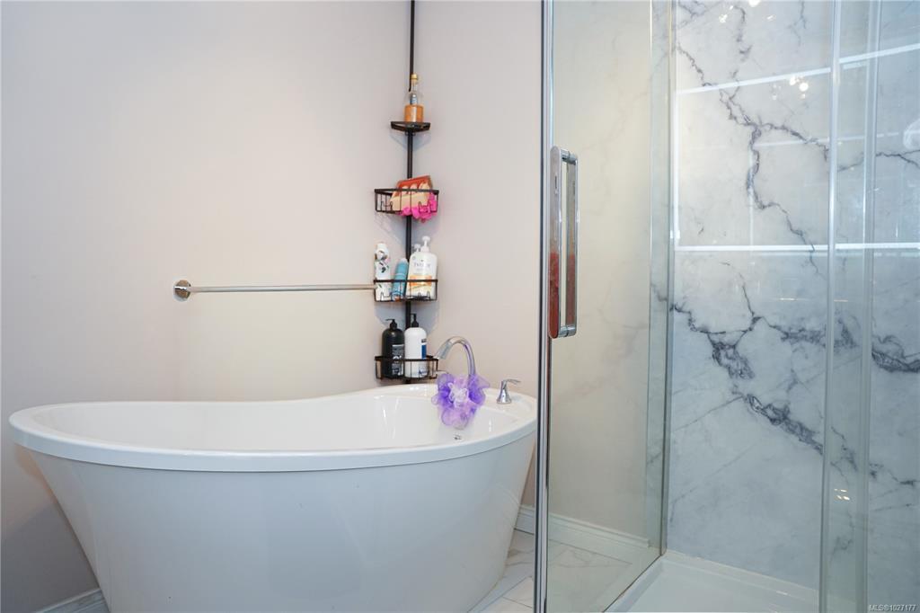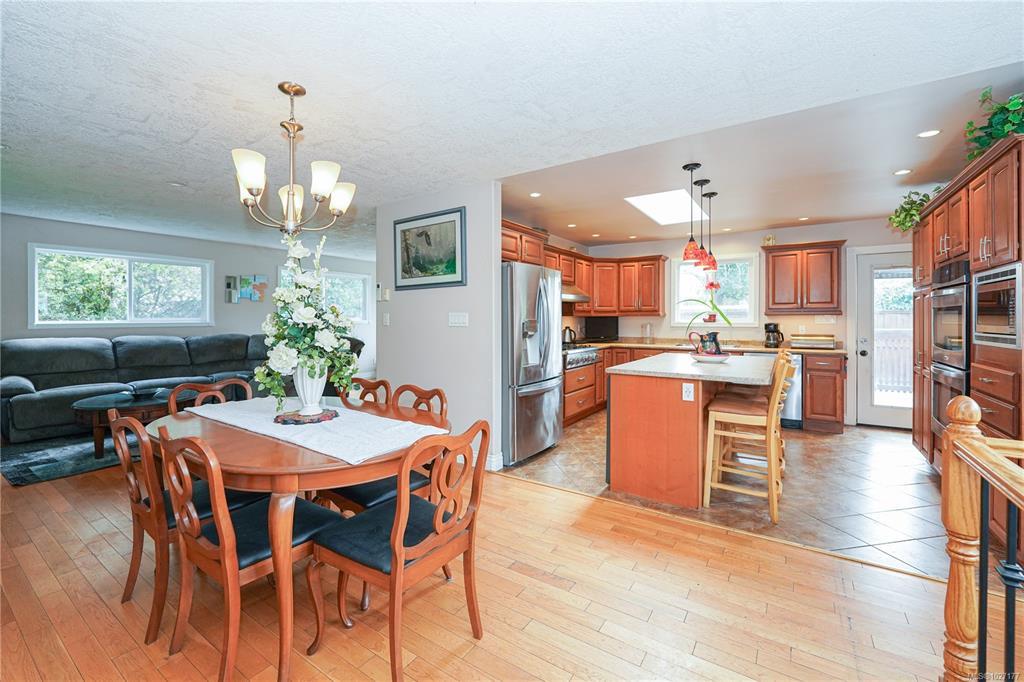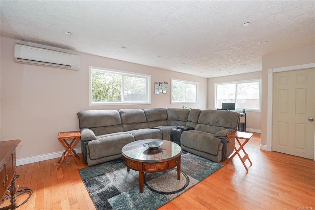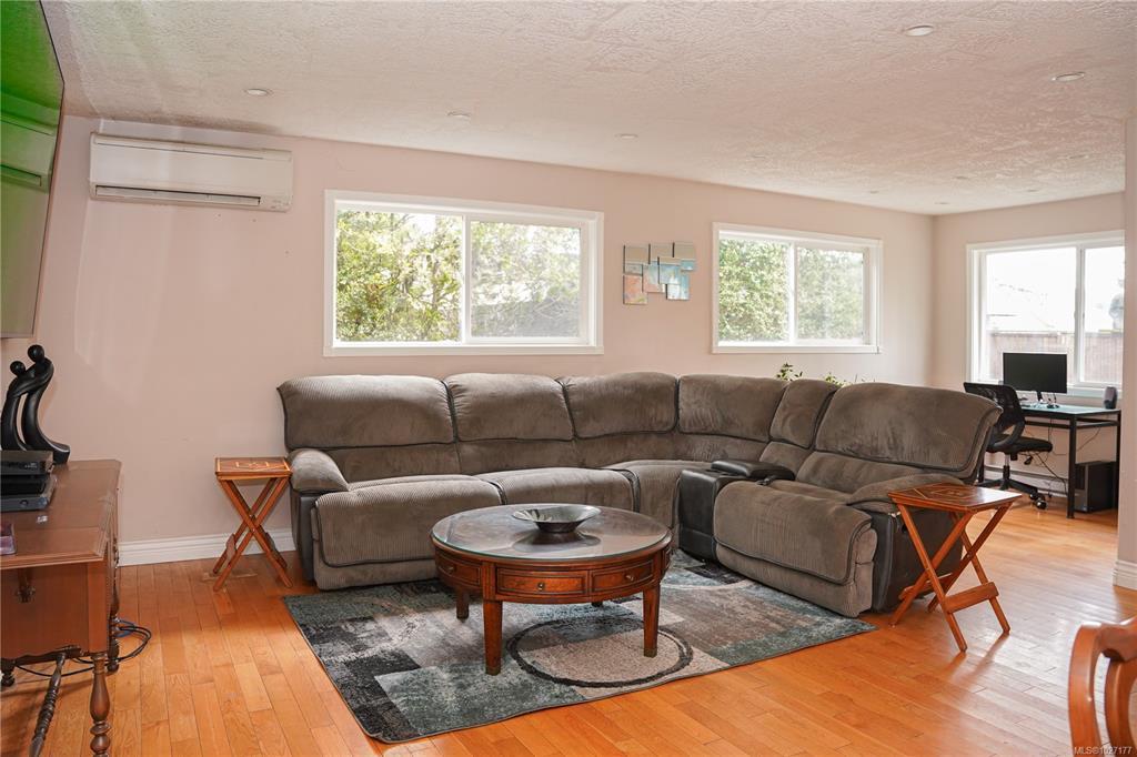 Tucked away at the end of a quiet cul-de-sac, this unique 10,324 sqft property offers an exceptional blend of space, privacy and versatility in the heart of Langford. Welcome to 1009 Linda Lane. This 1990 sqft 2 bed, 3 bath home (3rd bed can be created) features a spacious Living / Dining layout and beautifully updated kitchen with large island, stainless appliances and propane stove—perfect for cooking and entertaining. A major 2006 renovation expanded the home and created the impressive 14x14 primary bedroom retreat upstairs with a luxurious 5-piece ensuite, heated tile floors and walk-in closet. The lower level offers a second bedroom and a massive theatre room with wood stove and tiered seating, easily converted to a third bedroom. Enjoy the west-facing 21x19 deck, large patio with hot tub, and private garden space. A rare property, a block from Langford Lake, with Central Vac, a detached 28x24 workshop/garage, RV parking, NEW HEAT PUMP (2024) and parking for multiple vehicles.