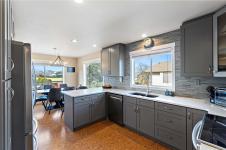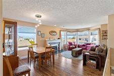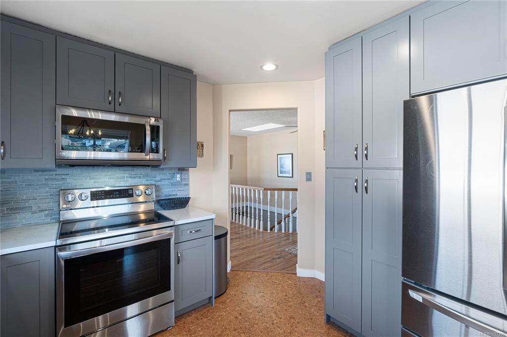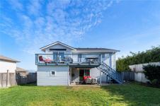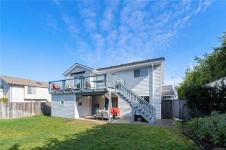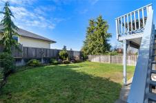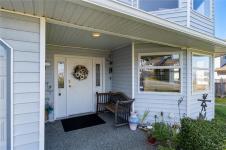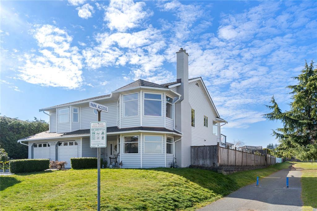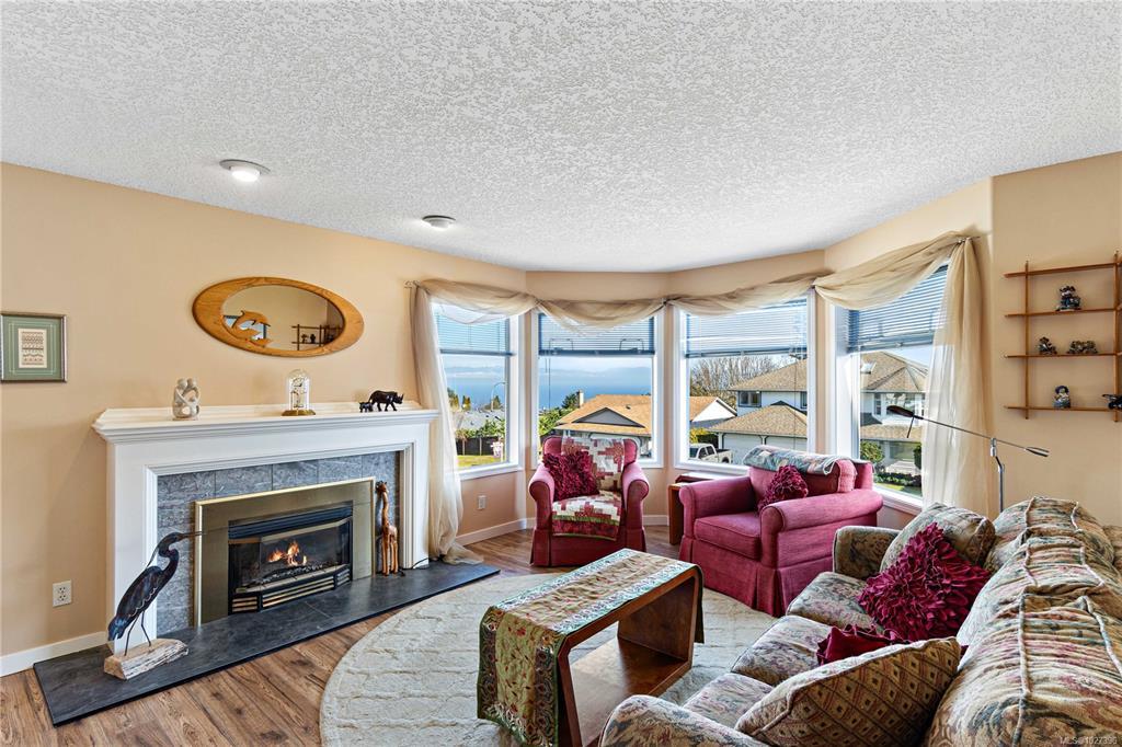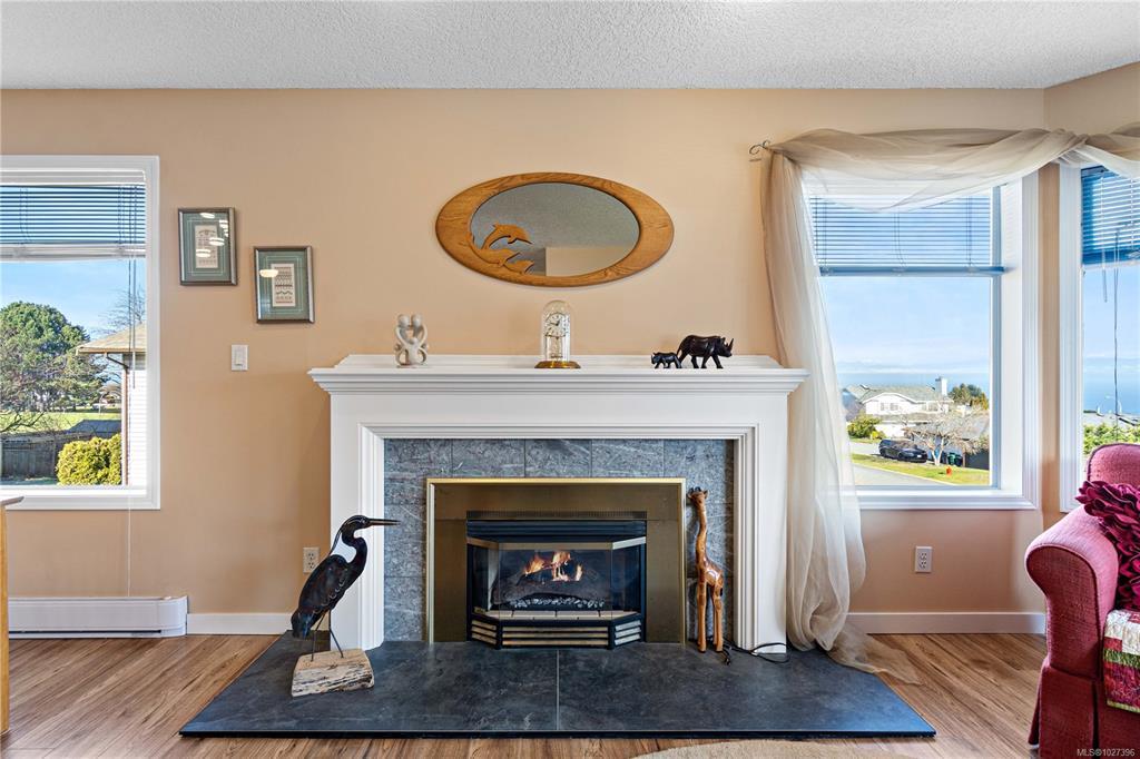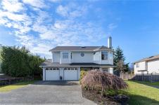 Family homes with ocean views in a quiet North Nanaimo location are rare. Enjoy the heated tile floors when entering and the large family room on the right down the hall to a bedroom/bathroom combination (a mortgage helper?) and a media room featuring a patio door to the private yard plus a laundry room and a double car garage. The main level has three bedrooms the ensuite with heated tile floors. The living room has a fireplace and panoramic windows to enjoy the ocean views. The rising sun silhouettes Vancouver, and its buildings reflect the setting sun. The updated kitchen features stainless steel appliances, solid surface counters, with access to a deck to enjoy the evening sun, with a view of the coastal mountains. The roof is 8 yrs old and has copper plumbing. Most of the house is heated with a gas “woodstove” and fireplace. A great location for families, adjoining a laneway into Groveland Park, a short walk to the ocean front. Measurements approximate buyer to verify.