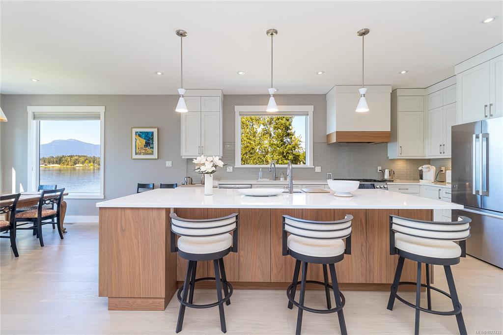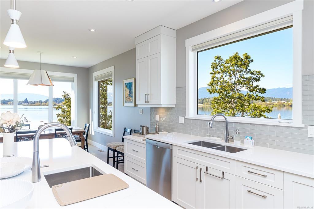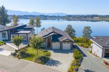 Discover this thoughtfully designed, 2021 custom built by Vandine Construction, 4-bed+den executive home on Quamichan Lake. The main floor showcases engineered hardwood, quartz/silestone/tile window accents, spacious living area with an extra-wide gas fireplace all taking in the stunning lake and mountain views. The kitchen boasts a remarkable pantry, high end appliances and good quality cabinetry with plenty of storage space. Comfort is ensured with a gas furnace, heat pump, and natural gas generator. Outdoor living shines with a large covered deck finished with glass panels and stairs down to the lower patio with 2 BBQ hookups and gas firepit. This, all just steps from a beautifully finished dock that has all-weather surfacing and your own kayak launch brackets. Extras include: professional landscaping, rock crevice garden, water filtration/de-chlorination system, hard-wired security cameras, and more. Come see this perfect blend of luxury, function, and lakefront lifestyle.