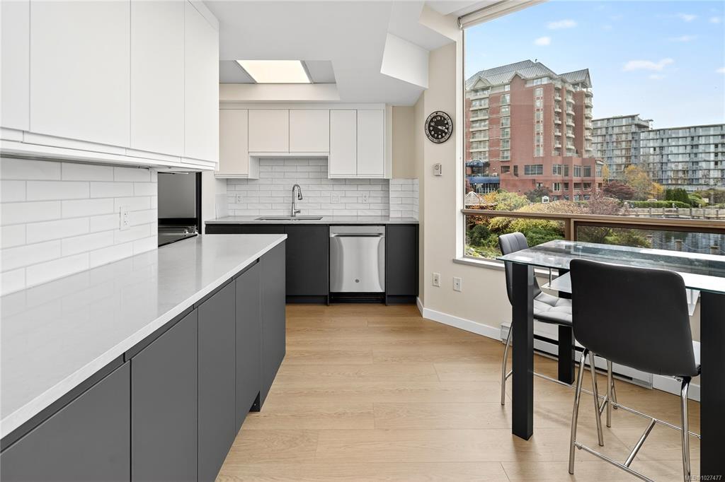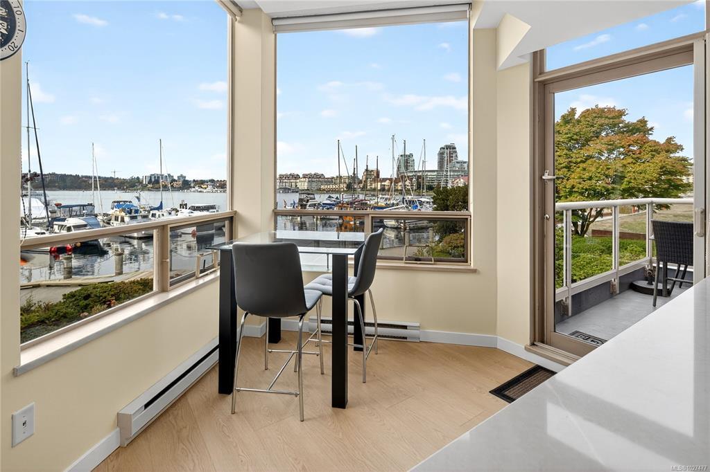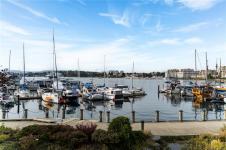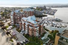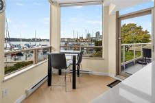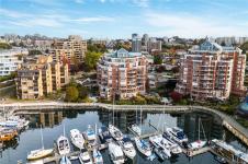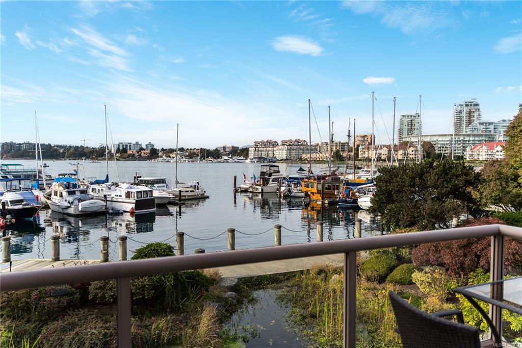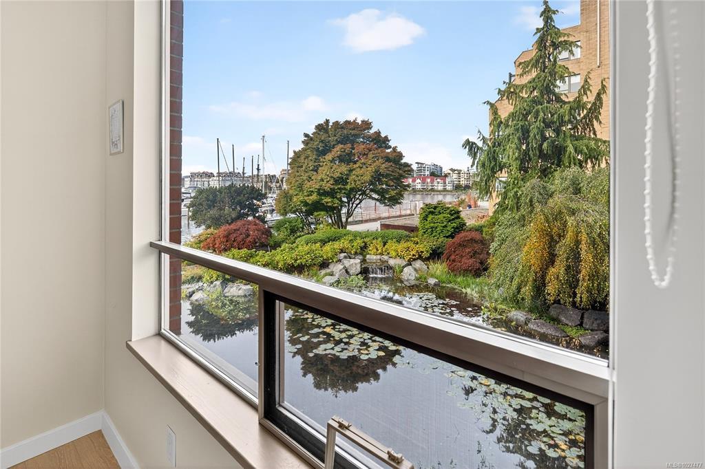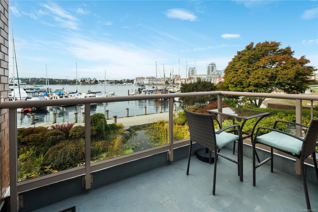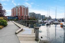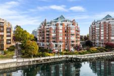 **OPEN HOUSE MARCH 8th 1:30-3:00pm** SIGNIFICANTLY REDUCED! Unobstructed Ocean Views and Fresh Renovations! This is a prime spot for a Victoria lifestyle. Walk the David Foster Pathway to the Inner Harbour, Empress, and Ogden Point. Carriages, float planes, and ferries make you feel like you're in a Hallmark movie. Retreat to your west-facing balcony for mountain and harbour vistas from your turnkey home. Updates like new hardwood flooring, a sleek kitchen, and 9'3" ceilings save you the work of modernizing. The layout captures beauty from sunrise to sunset, even overlooking a lily pond. Gas fireplace, underground parking, updated common areas, a storage cage, and large Primary bedroom with ensuite bath make this tremendous value under $900k. Truly a picturesque place to call home.