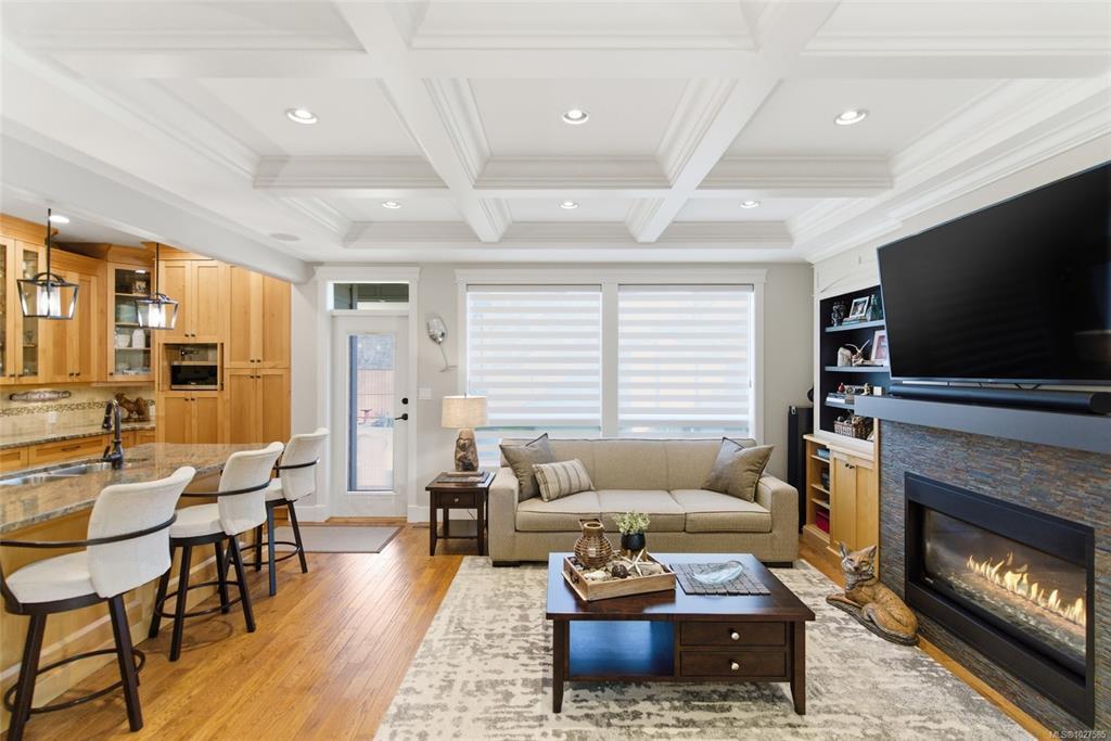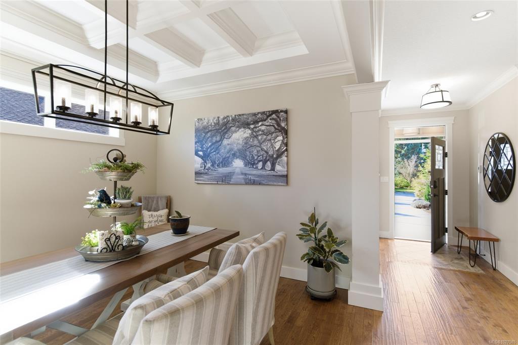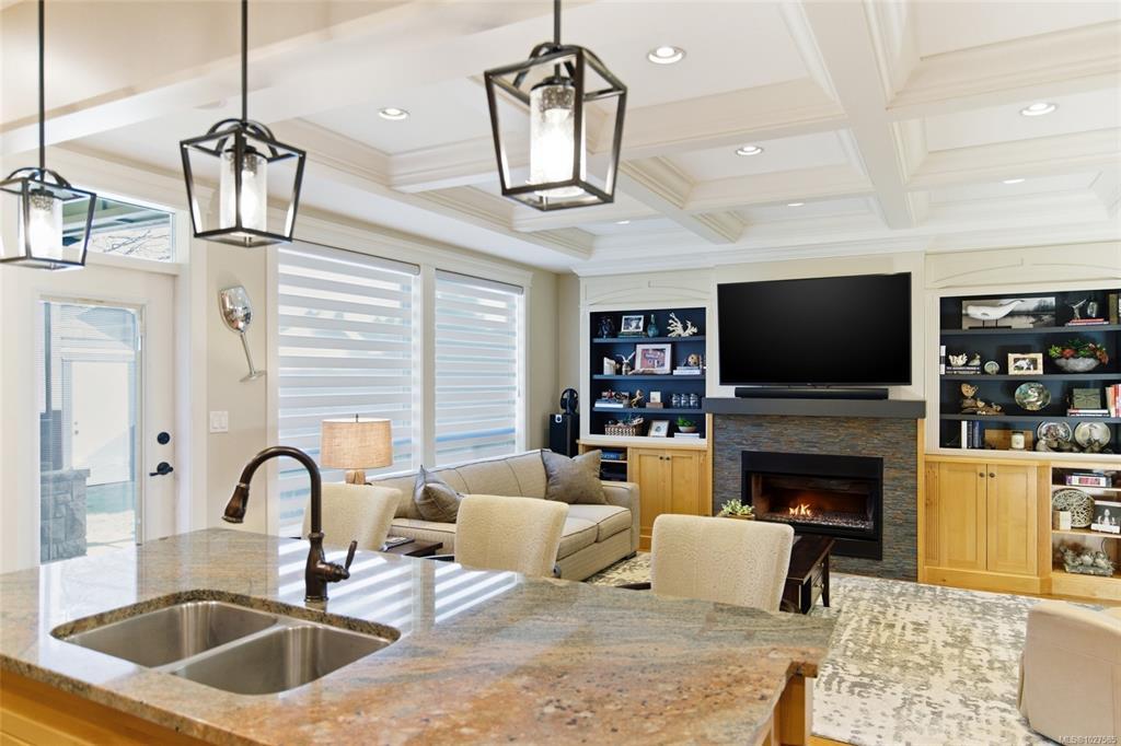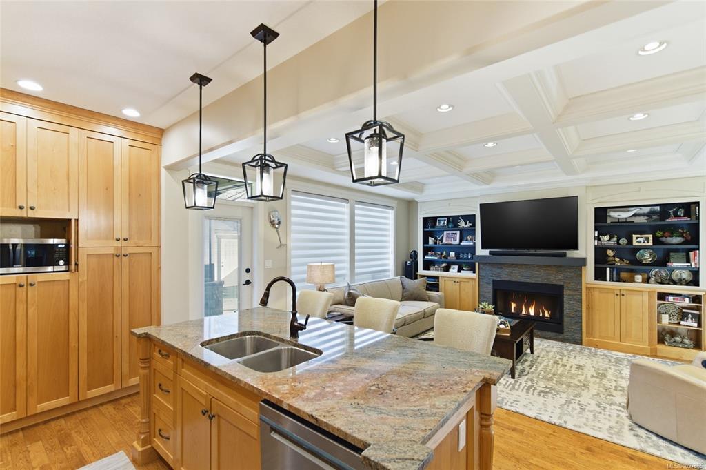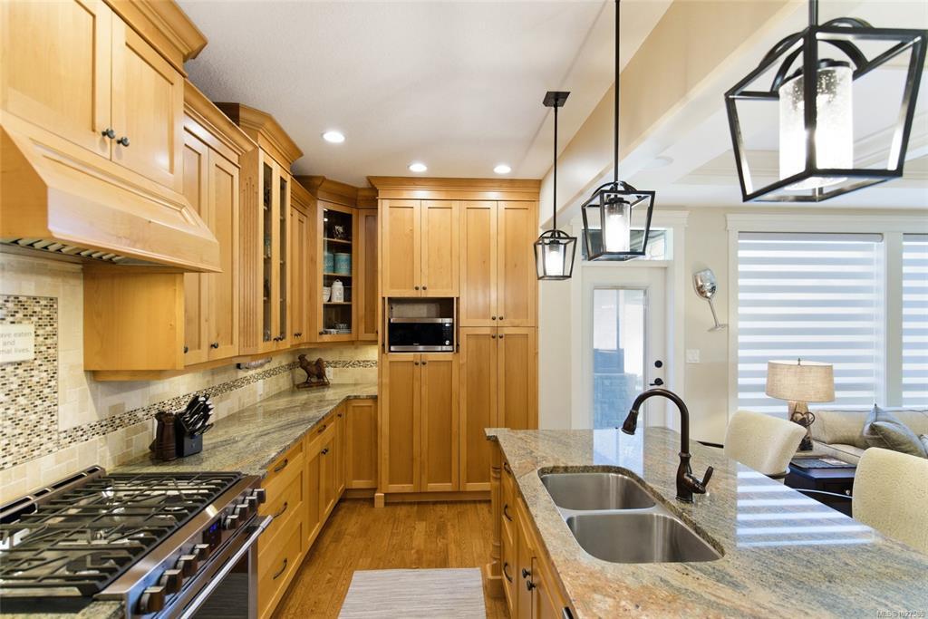 Exceptional custom-built rancher offering quality craftsmanship and thoughtful design throughout. This 3 bedroom + den home features an open concept layout with 9-ft ceilings, solid oak flooring in the main areas, and elegant coffered ceilings in the living and dining rooms. The bright kitchen enjoys morning sun and includes granite countertops, a sit-up island, stainless steel appliances, gas cooktop, and excellent workspace. The living room features a gas fireplace with custom cabinetry, while the den offers an electric fireplace and tray ceiling. The spacious primary bedroom includes a large walk-in closet with custom shelving and a luxurious ensuite with deep tub and separate shower. Heated floors warm the entry, laundry and bathrooms. Outside, enjoy a fully fenced private backyard, oversized driveway with RV/boat parking, new shed on concrete (2025), and double garage with workbench. Just 3 minutes to Morningstar Golf Course and French Creek Marina. Schedule your viewing today!