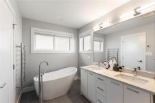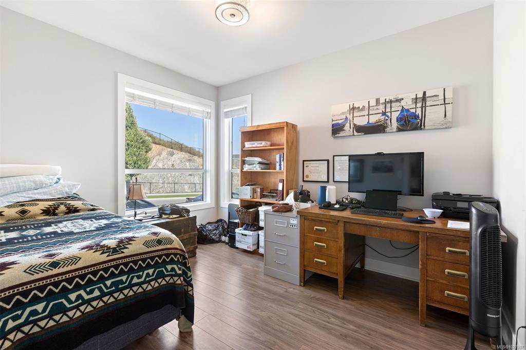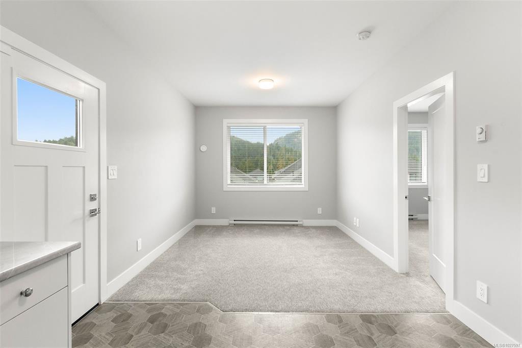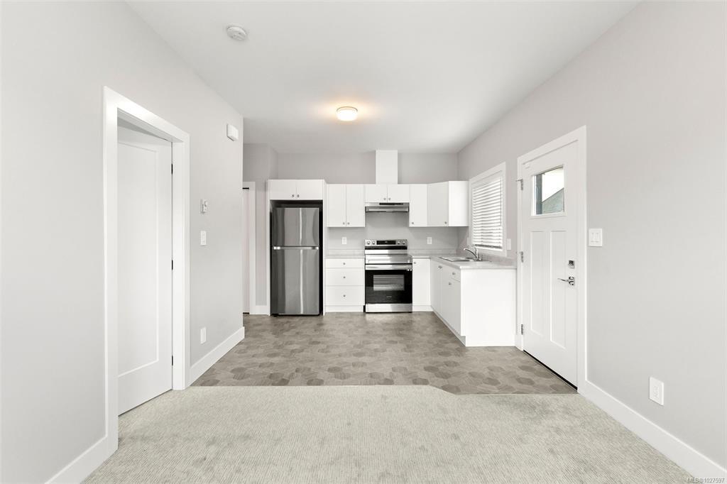 The Carriage Home Collection by Verity. This exceptional 4-bedroom, 3-bath main home with a detached 1-bedroom, 1-bath carriage suite over the garage offers the perfect blend of style, space, and flexibility. Thoughtful upgrades include quartz countertops throughout, stainless steel appliances with a gas range, and generous cabinetry and storage options. The open-concept design creates an inviting space for entertaining while maintaining comfort and functionality for everyday living. Enjoy one of the community’s largest yards—fully fenced, irrigated, and ideal for kids, pets, or gardening. The carriage suite, privately set along the laneway, adds versatility and privacy. Located steps from schools, the Jordie Lunn Bike Park, Rhino Coffee, Langford Lake, the YMCA, and major shopping. Perfect for multigenerational living or as an excellent income opportunity. Move-in ready and brimming with value, this home checks every box for lifestyle, comfort, and investment.
