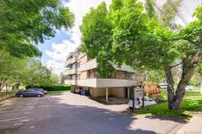 Convenient, peaceful urban living in this top-floor, SW corner suite nestled in a boutique 10-unit building. Bathed in natural light, the south-west facing windows illuminate every corner, enhancing the spacious layout of this 2-bedroom, 1-bathroom home. The primary bedroom features a walk-in closet, with both bedrooms well separated for privacy, while the generous living room features laminate flooring and a real wood burning fireplace. The large, wrap-around balcony invites you to enjoy the outdoors with elevated views that capture the essence of the neighbourhood. Convenience is at your fingertips with in-suite laundry. Within walking distance, find a variety of grocery stores and shopping options, with transit routes easily accessible. Situated on a peaceful side street, across from the welcoming green space of Rutledge Park, this location strikes the perfect balance between quiet residential living and the convenience of urban access. Water & hot water included! 2 Pets allowed!