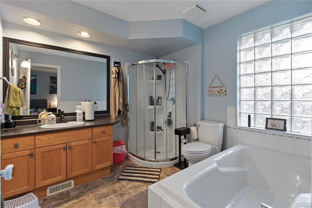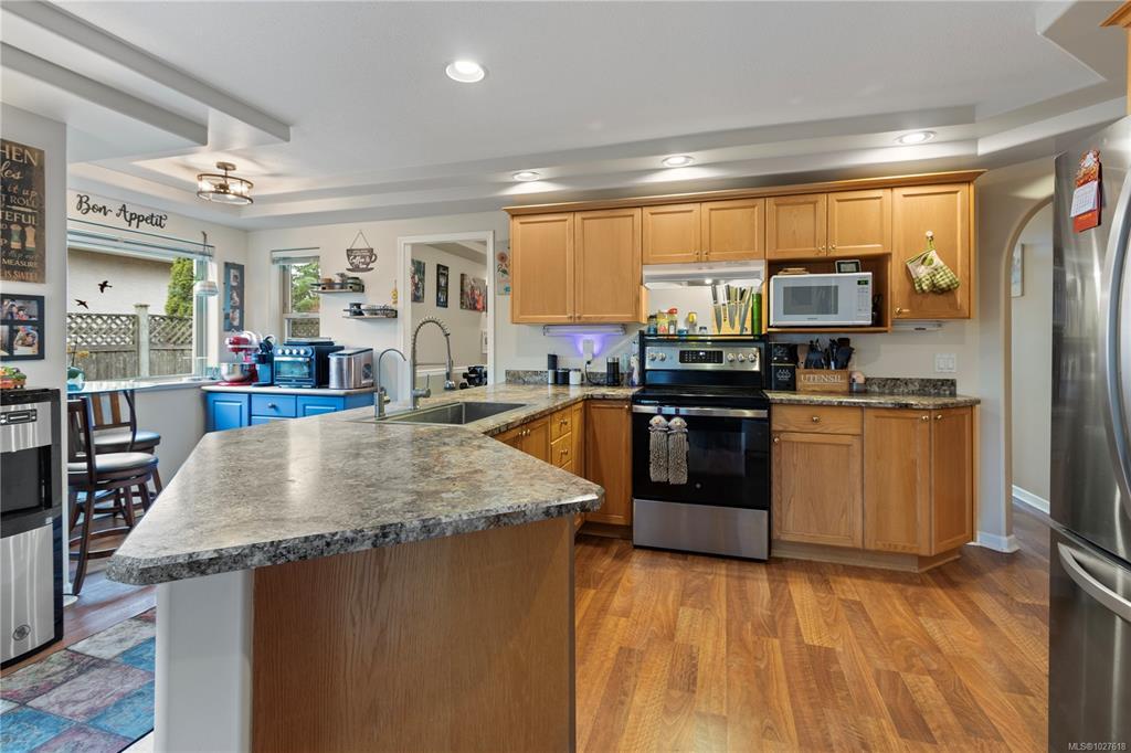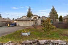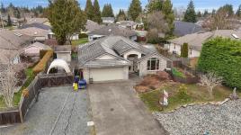 Welcome to this 3 bedroom, 2 bathroom rancher in the sought-after community of French Creek. This home features vaulted ceilings in the living room, creating an open atmosphere, while tray ceilings in the kitchen, family room & dining areas add a touch of refined style. The well designed kitchen boasts an eating nook, stainless steel appliances & storage space. The kitchen seamlessly connects to the family room, which includes a cozy gas fireplace. The living room & adjoining dining room offer versatile areas. The primary bedroom includes a walk-in closet & built-in vanity. The ensuite features a tub, separate shower & natural light from a skylight. 2 additional well-sized bedrooms, a 4-piece bathroom & convenient laundry room complete this home. Outside, you'll find a covered patio overlooking a large, fully fenced backyard with gardening beds. Don't miss the RV/Boat parking & heat pump! This home is just moments from Morningstar golf course, French Creek marina & plenty of shopping!