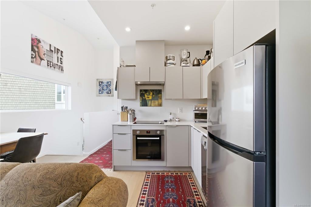 First-time home buyer alert!!**, This Arzye-built one-bedroom townhome offers a wonderful blend of cozy comfort and modern efficiency within a thoughtfully designed layout in a location that is hard to beat! The home features an open-concept floor plan with beautiful hardwood floors throughout. The modern kitchen is equipped with sleek stainless steel appliances and seamlessly flows into a bright living room, creating an inviting space. You'll appreciate the high ceilings and clean lines that contribute to the contemporary feel of the home. Additionally, the unit offers ample storage solutions, including generous closet space, built-in storage, and convenient in-suite laundry. Includes underground secured parking. A separate storage locker and dedicated bike storage are also available. Must be a first time home buyer as this is an affordable housing unit.