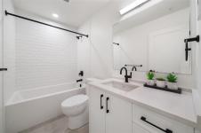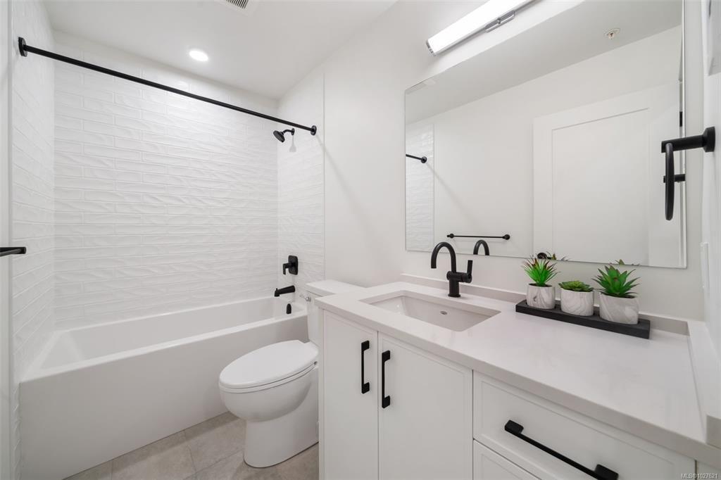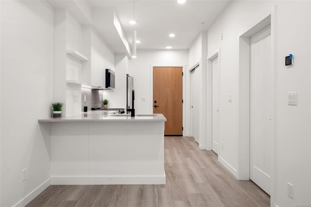 Step into comfort and contemporary living in this thoughtfully designed condo, where every detail has been curated for ease and enjoyment. The modern kitchen is both stylish and functional, showcasing Whirlpool appliances, a tiled backsplash, and a smart bar seating area that invites casual meals and conversations. The bathroom features a tiled shower complemented by in-floor heating—perfect for slow mornings and relaxed evenings. Full-size stackable laundry, air conditioning, and window screens add everyday convenience, while blackout blinds in the bedroom create a peaceful retreat for restful nights. Step outside and take advantage of the excellent gym and inviting courtyard—ideal spaces to recharge, socialize, or simply enjoy a quiet moment outdoors. Located in the heart of Esquimalt. The ocean, downtown area, Naval base and shopping are nearby. This home effortlessly blends comfort, function, and lifestyle, offering a welcoming space you’ll be proud to call your own.