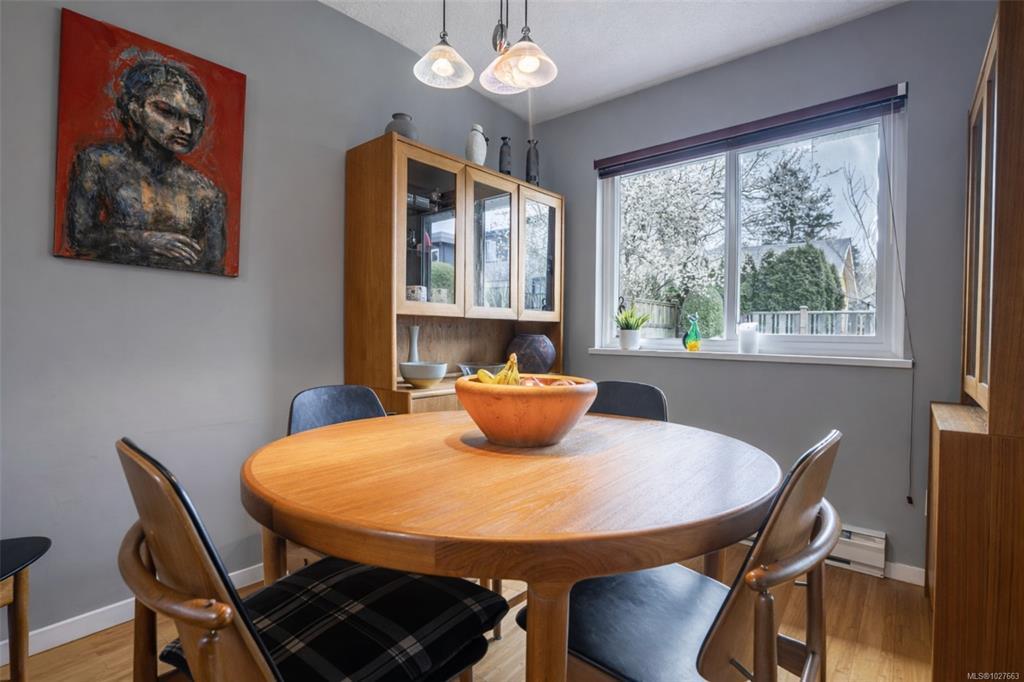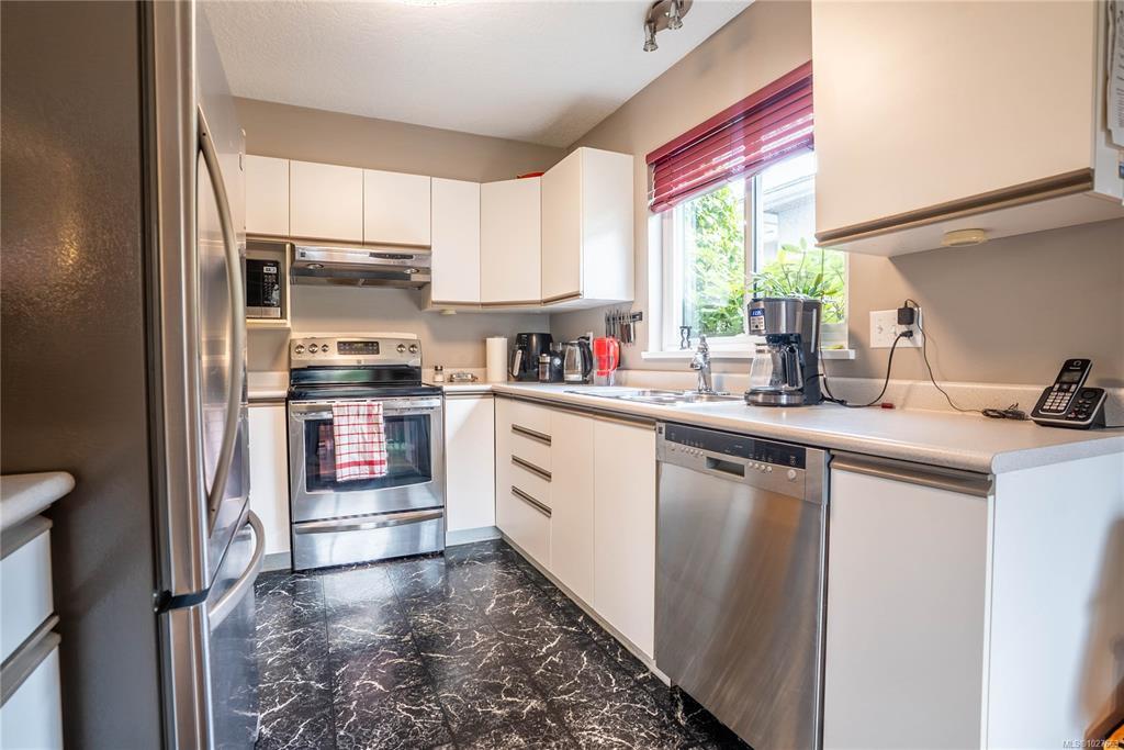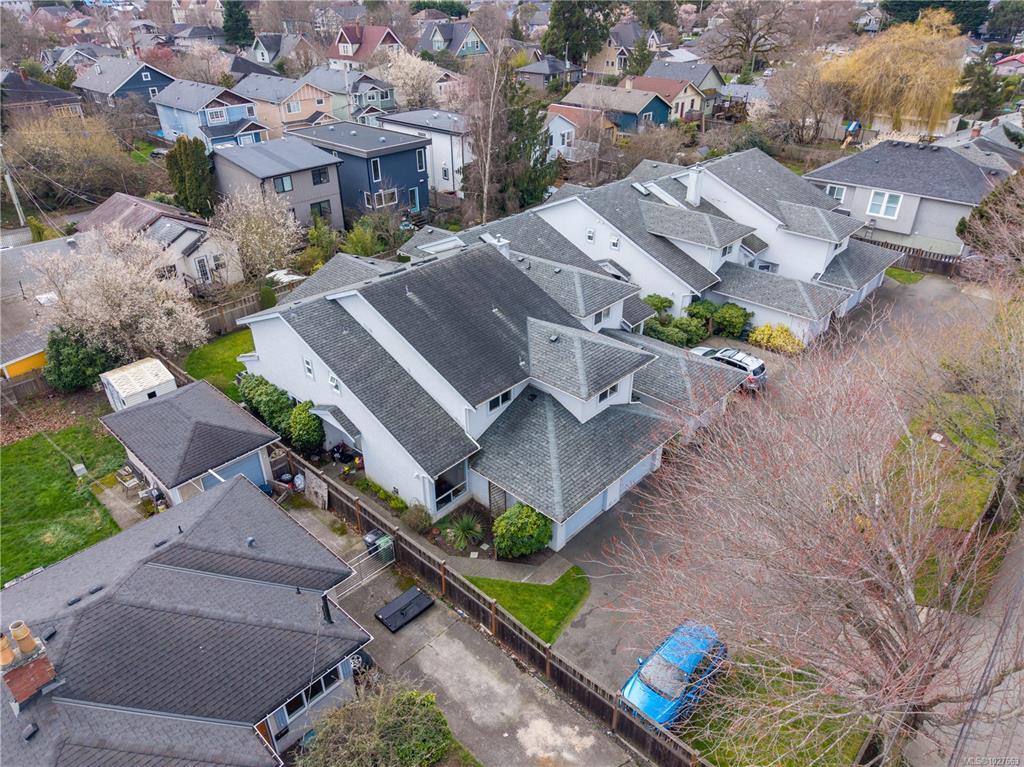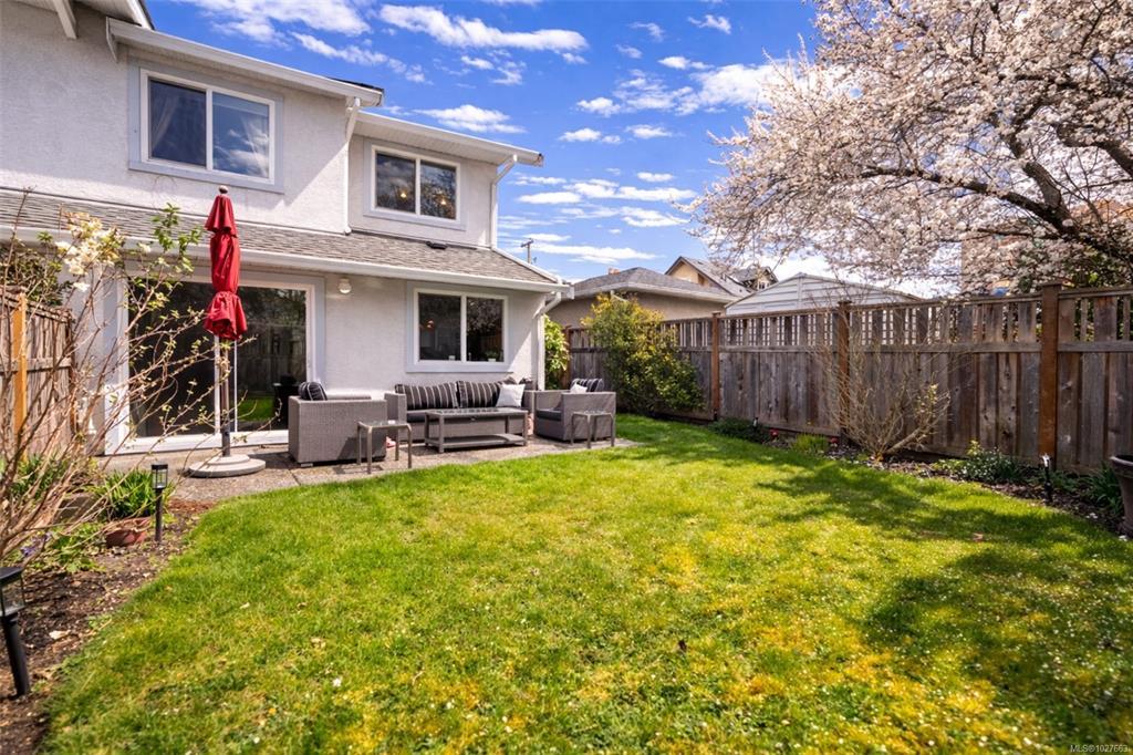 Welcome to 1771 Bay Street — a beautifully maintained end unit 3-bedroom, 3-bathroom home offering generous living space in a prime, walkable location bordering Oak Bay. The spacious primary retreat features a walk-in closet and an oversized ensuite shower for a private, comfortable escape. The main level flows effortlessly with a separate dining room, an inviting living room with vaulted ceilings and cozy gas fireplace, and a family room ideal for daily living or entertaining. The bright kitchen with stainless steel appliances overlooks the sunny, south-facing backyard, filling the home with natural light. Upstairs offers two well-sized bedrooms for family, guests, or office space. Additional highlights include a single-car garage, extra parking, and ample storage. Steps to the hospital, transit, cafés, restaurants, and amenities, this home blends space, light, and exceptional convenience in a sought-after neighbourhood.