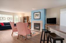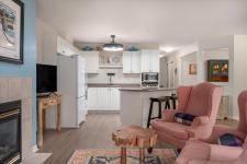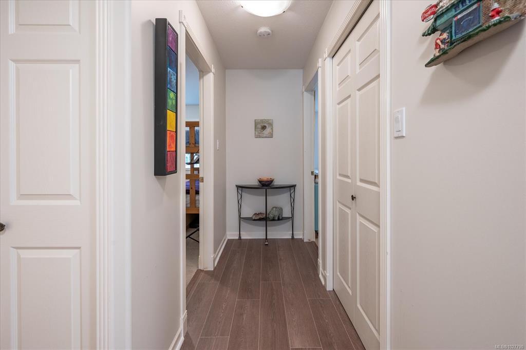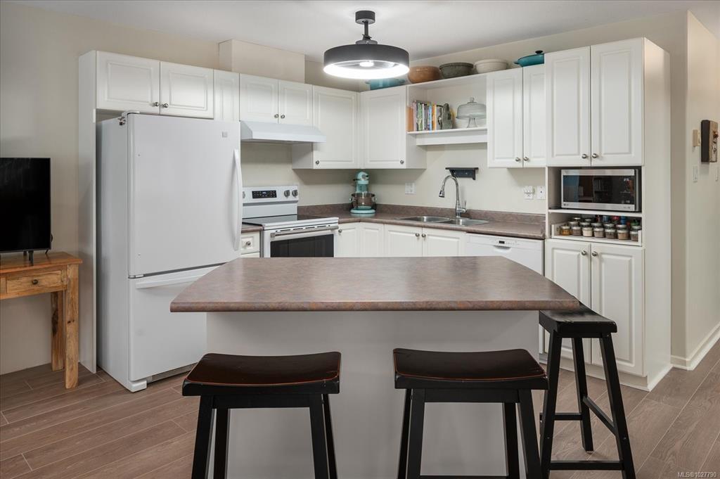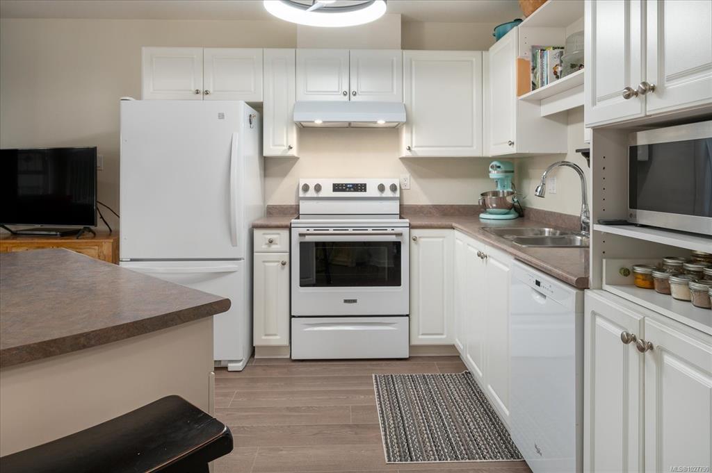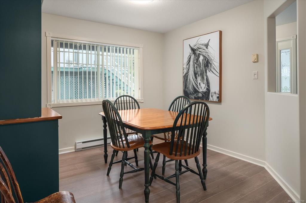Welcome to this bright, spacious home in Floral Woods, ideally located in North Nanaimo, close to all amenities; shopping, medical, restaurants, on bus routes, close to walking trails & oceanside parks. This 2-3 bedroom,2 bath, ground floor suite has been updated with new flooring in living area, newer washer/dryer, newer HW tank. Light floods in through the living room bay windows- a cosy gas fireplace is a central feature.The efficiently planned kitchen has plenty of storage & a handy island/breakfast bar. A bright dining room flows through from the kitchen, or -you could convert this space to your den or 3rd bedroom. Down the hall you'll find the primary bedroom with a walk in closet, & 3 pce ensuite. The second bedroom & 4 pce bath completes this lovely home. Extra features- a wonderful dry crawlspace!-offering tons of useful, accessible storage. A covered front patio, accessed through sliding doors for relaxing outside, or walk the wooded trails that run behind the complex.
