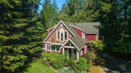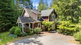 Discover a rare piece of Sooke’s history with this 7.29-acre waterfront peninsula, where the Sooke River meets the estuary. Held by the historic Milne family since 1883, this legacy estate offers a once-in-a-lifetime opportunity in an unparalleled natural setting. The 2,570 sq. ft. custom West Coast home, built in 2005, blends timeless design with modern comfort. Bright and open, it features coloured concrete floors with in-floor heating, quality craftsmanship throughout, and a flexible layout with a main-floor flex room and full bath. Upstairs, four spacious bedrooms each open onto a private balcony, framing sweeping views of the river and forested acreage. A true nature retreat, watch eagles soar, stroll through mature woodland, and take in the serenity from your own riverside plateau. Zoned RU2 with potential for up to three residences, this property offers endless possibilities for those seeking history, beauty, and modern living in perfect harmony.