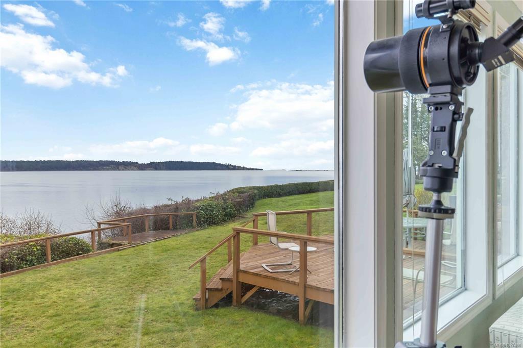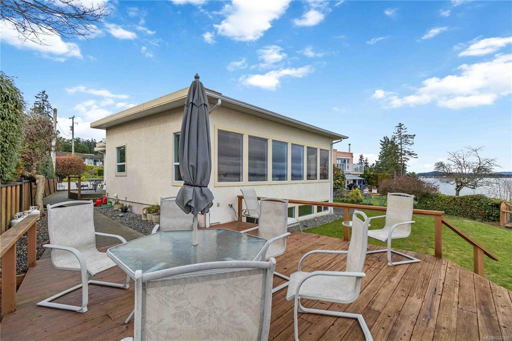 This waterfront mid-century modern home showcases sweeping ocean views across Haro Strait to the Gulf Islands, the San Juans, Mt. Baker, and Sidney’s twinkling lights. Nestled in sought-after Bazan Bay on the Saanich Peninsula, the level 0.28-acre property offers ever-changing scenery, from passing marine traffic to visiting wildlife. The comfortable one-level home features 2 bedroom+ den and a full basement, ready for your updates—or the perfect setting for a custom dream build. Manicured gardens, sun-drenched patios & deck space, a single garage, carport, and circular driveway provide both beauty & convenience. Direct waterfront access invites kayaking, paddleboarding, or peaceful beachcombing right from your backyard. Ideally located just minutes to parks, transit & the charming seaside town of Sidney, with easy access to ferries, the airport, and downtown Victoria. Oceanfront opportunities like this are rare—don’t miss your chance to embrace the quintessential West Coast lifestyle.