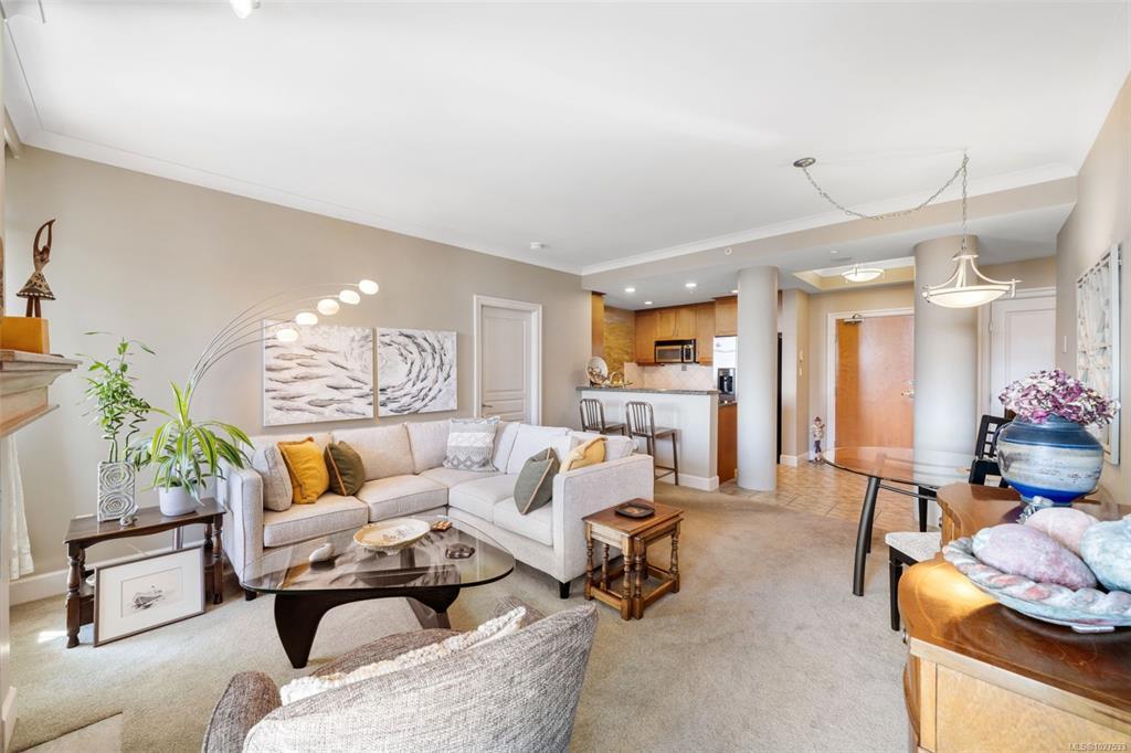 Welcome to Shoal Point, one of Victoria’s premier luxury residences just steps from the Inner Harbour. This beautifully appointed 2 bed, 2 bath pet friendly condo offers a thoughtful floorplan with spacious living areas and quality finishings throughout. The large east-facing deck overlooks Fisherman’s Wharf Park, where morning light pours in and ocean glimpses add to the outlook. Inside, the kitchen features granite counters and a gas cooktop, while the living room is anchored by a cozy gas fireplace. Shoal Point offers exceptional amenities including a concierge, 25m lap pool, hot tub, cool pool, sauna, steam room and fully equipped gym, plus a bocce/putting green, workshop, library, bike and kayak storage & two guest suites. Parking wired for EV charging. Known for its vibrant social calendar and welcoming community, this is a special opportunity in one of Victoria’s most iconic buildings.