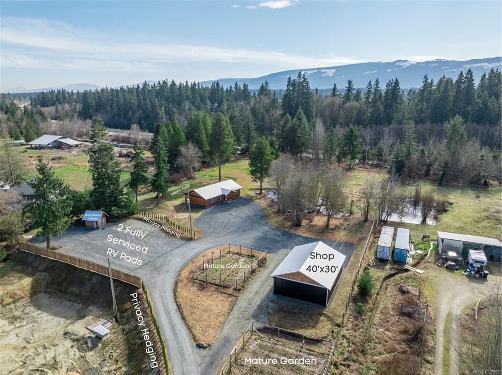 Welcome home to 3365 Ponderosa Way, offering peaceful rural living with income or multi-generational living with 2 RV sites with approved septic, water, electricity (one 50A and the other 30A). Set on 2.86 acres of level, usable land, this private property is 5 min from DT Qualicum and 10 min to the beach. The 3Bed/2Bath rancher features open-concept living/dining area and a spacious kitchen with a large island. Custom woodwork and hand-milled true cut 1" thick cedar board and batten siding showcase the home’s craftsmanship. A heat pump, metal roof and HRV system provide year-round comfort and long-term peace of mind. The Leylandii tree-lined driveway enhances privacy along the panhandle entry. The property also has 2 mature gardens and a 40' x 30' shop (1,200 sq ft) ideal for storage, hobbies, or workspace. With direct access to nearby biking, hiking, and horseback riding trails right from your driveway. Truly a rare opportunity to own a versatile acreage in a desirable Qualicum!