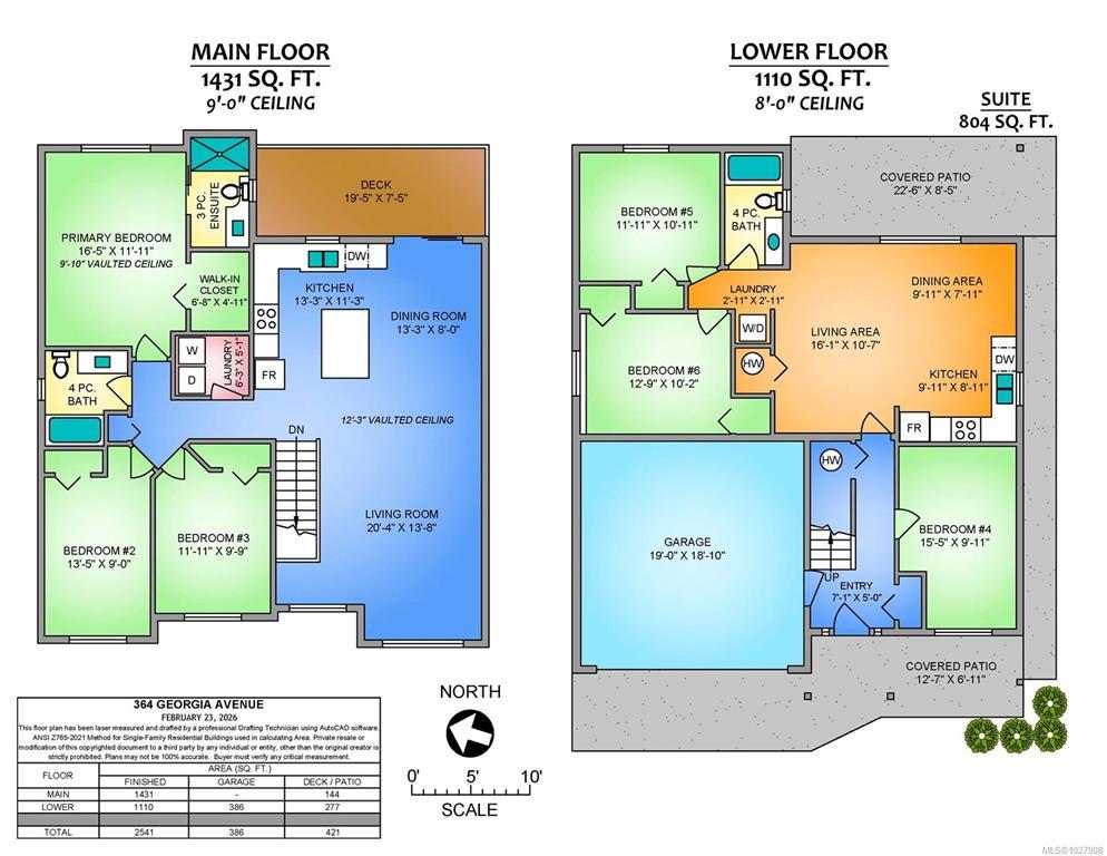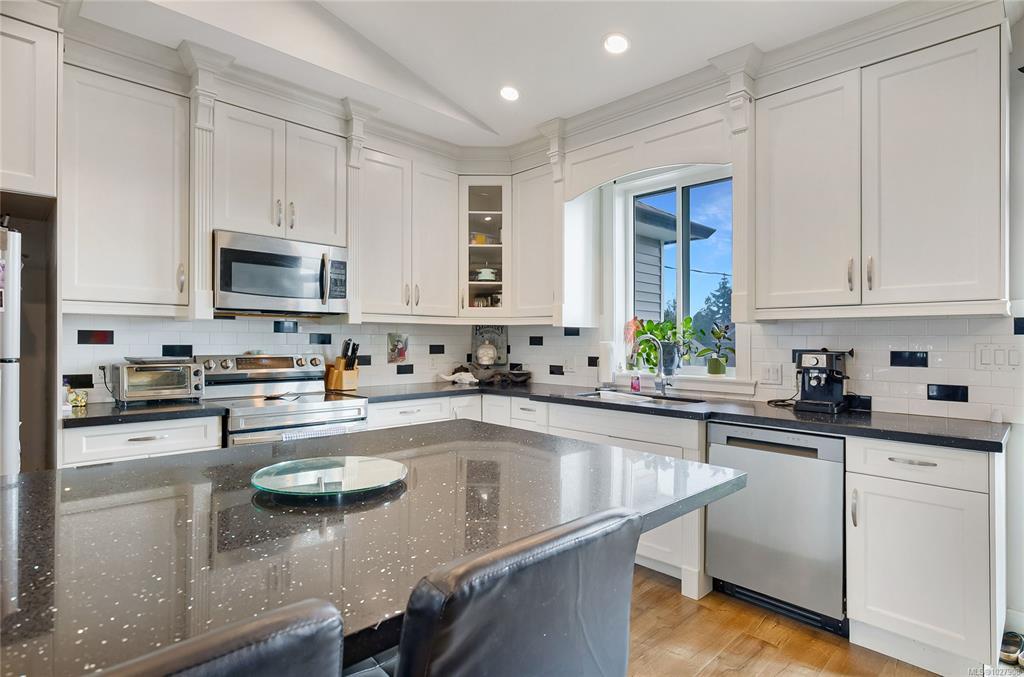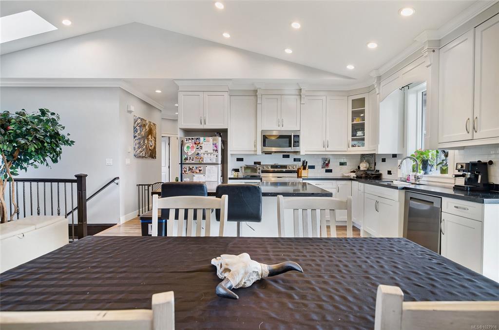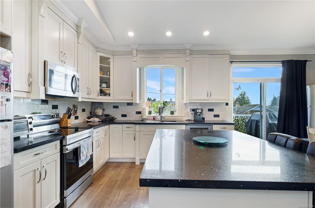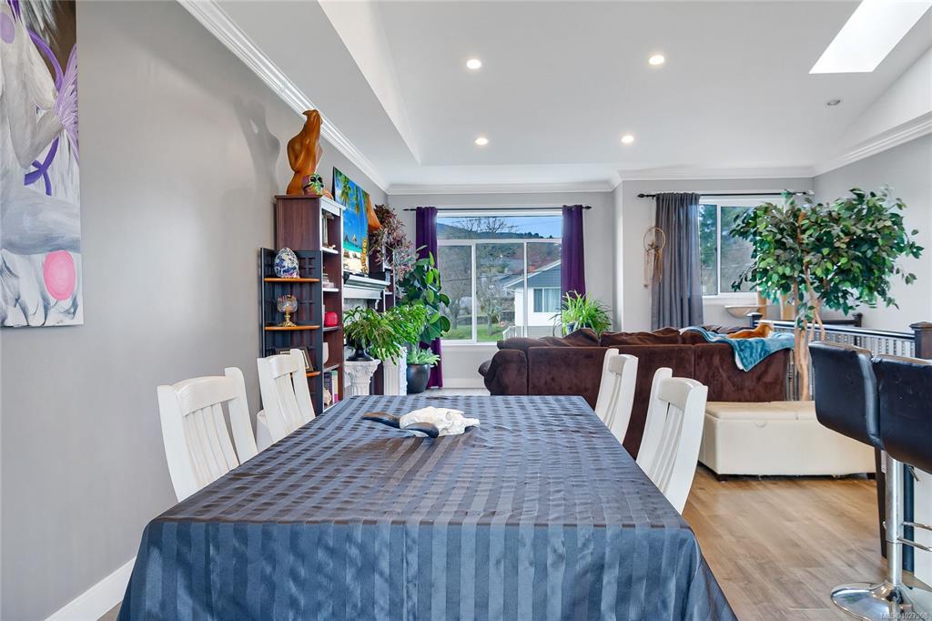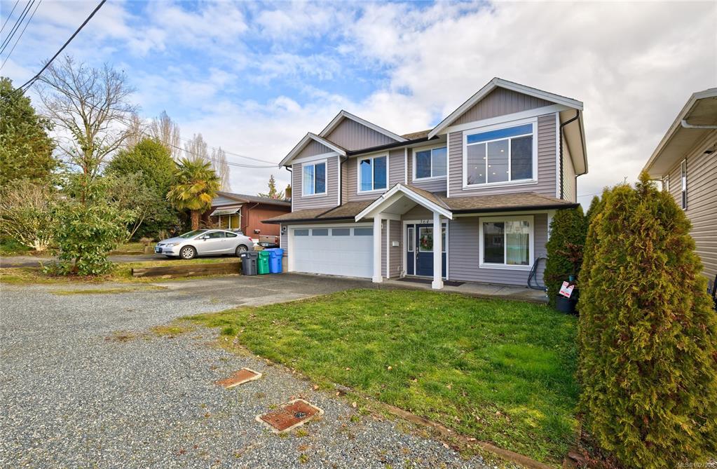 Enjoy the perks of a well maintained modern family home in a lovely mature neighbourhood with this 2015 two storey house in Nanaimo's University District. The ground level entry is where you will find a generously sized bedroom/office and access to the two bedroom suite and the stairwell that leads to upstairs. The upper main floor offers vaulted ceilings in the open living and kitchen areas where you can enjoy the views of Mt Benson by your electric fireplace or out on the balcony off the kitchen. Upstairs has 3 more nicely sized bedrooms with the main equipped with a full ensuite. Downstairs is a large 2 bedroom suite that is bright and comfortable with a separate covered entrance off the partially fenced yard. The yard is quite large, ready for new ideas and can be enjoyed from covered patios and the upper deck. With ample parking, lane access, a double garage and being well positioned to access schools, recreation and shopping, there is so much to love about this property.