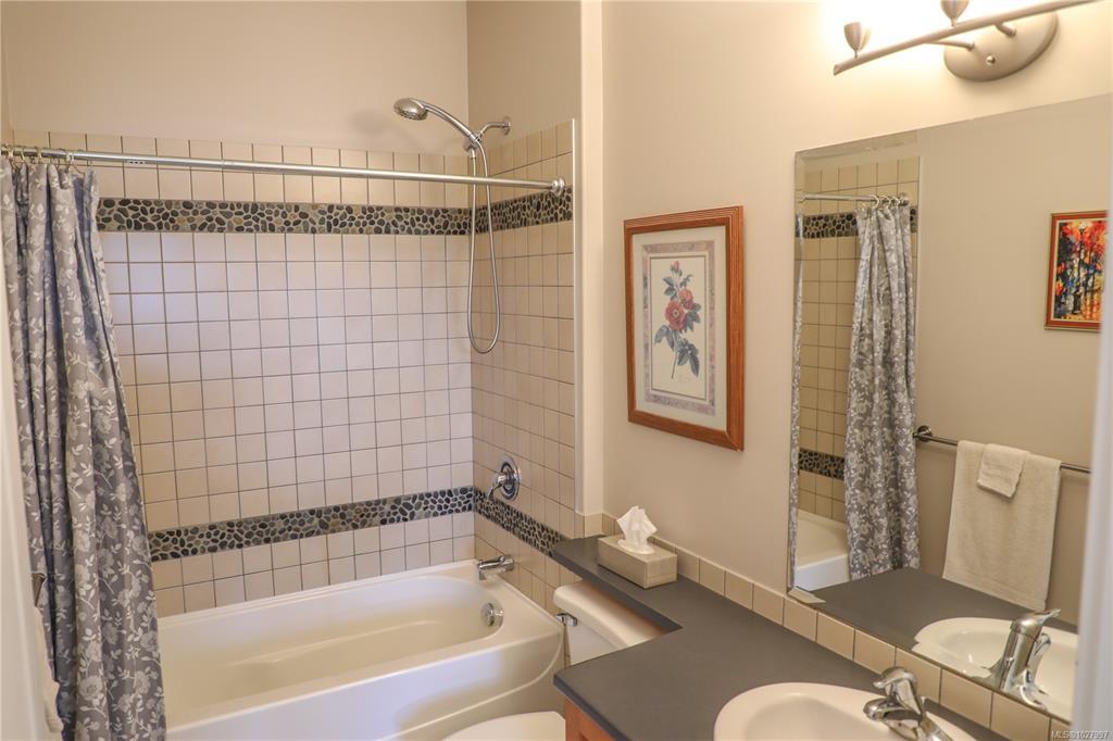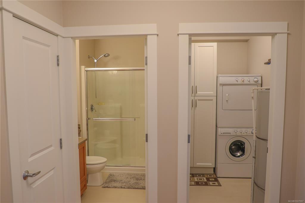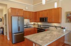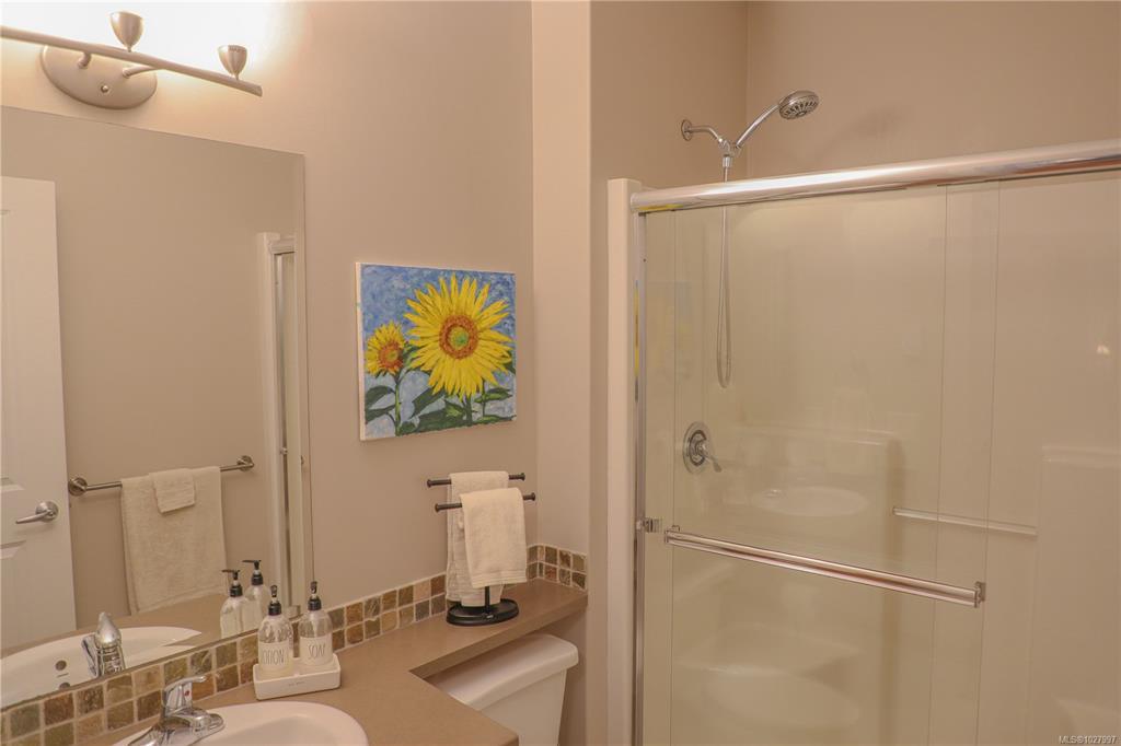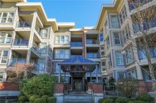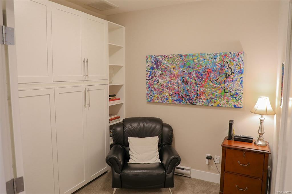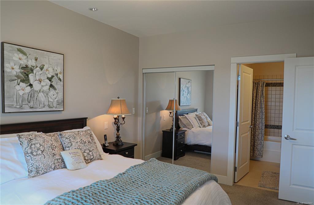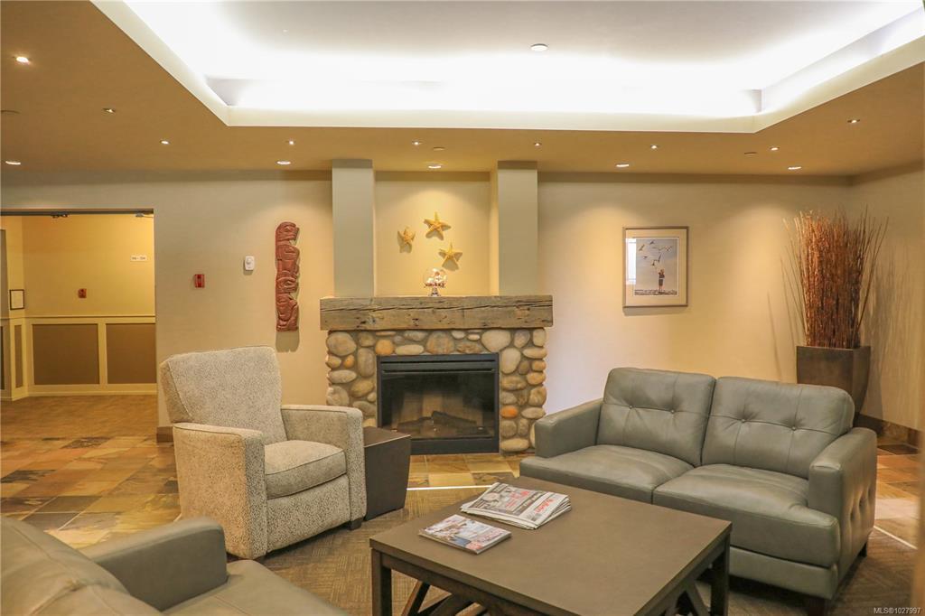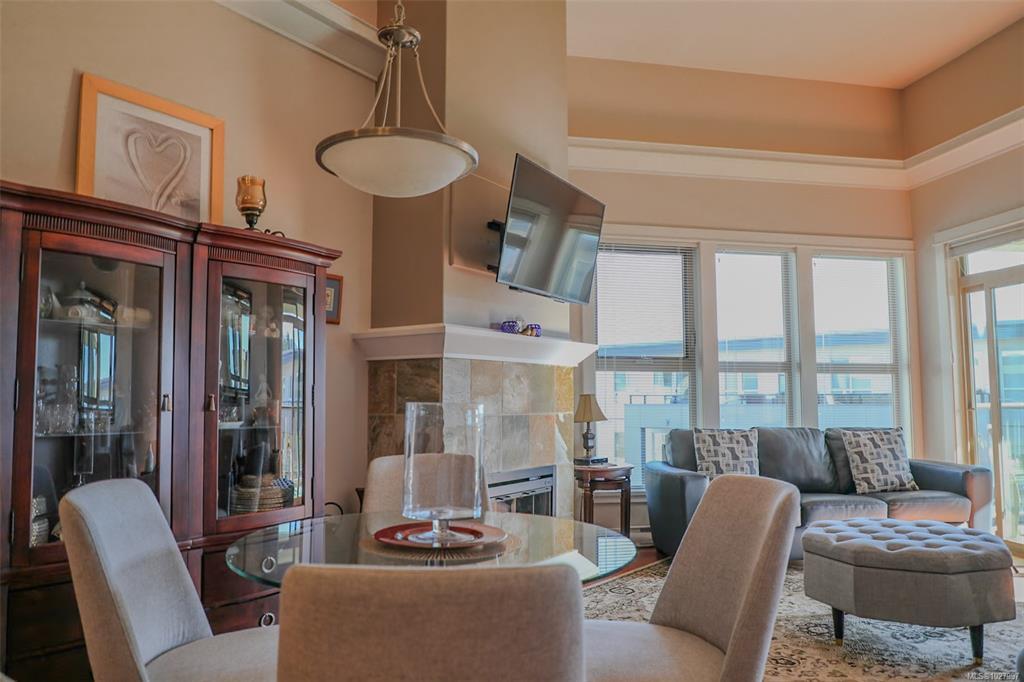 1 BED + DEN TOP-FLOOR CONDO WITH VIEW! Tucked away on the top floor of the popular Texada building in North Nanaimo, this bright and welcoming 1 BED & DEN condo offers distant ocean views from the balcony and a comfortable, easy-living layout. Inside you’ll find updated flooring, modern LED lighting, and a cozy electric fireplace with power above ready for your TV. The kitchen features stainless steel appliances, updated countertops, tiled backsplash, under-cabinet lighting, and a handy eating bar, all flowing nicely into the dining and living areas. The den includes a stylish built-in Murphy bed, making it perfect for visiting family or overnight guests while still working well as a home office. The spacious primary bedroom fits a king-sized bed and offers balcony access, a walk-in closet, and a four-piece ensuite with heated floors. In-unit laundry, underground parking, a roomy balcony, and access to the building’s fitness room round out this great home.