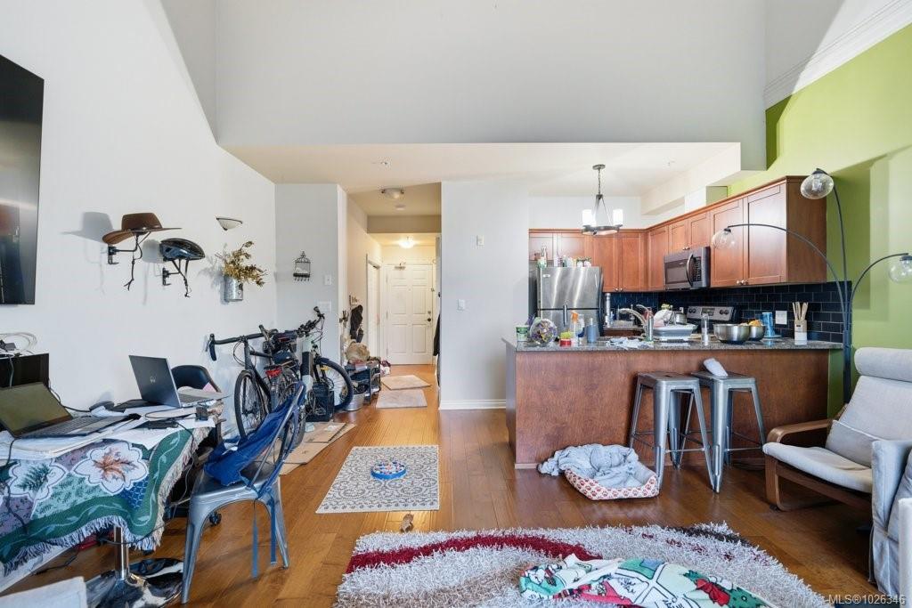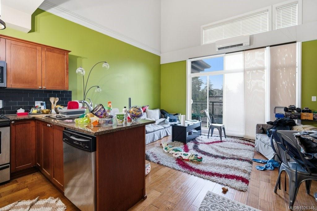 Discover loft living at The Strathmore in the vibrant heart of downtown Langford. This bright and airy two-story condo offers 1 bedroom, 2 bathrooms and 790 sq ft of stylish living, plus an incredible 520 sq ft private rooftop patio, your own outdoor retreat in the city. The open concept main floor features soaring 18’ ceilings and oversized windows, creating a warm and inviting atmosphere. The kitchen is thoughtfully designed with stainless steel appliances, granite countertops and rich wood cabinetry, flowing seamlessly into the living area where you can relax by the cozy fireplace. Upstairs, the loft-style primary bedroom offers a peaceful escape with ample storage and a private 4-piece ensuite. Step outside to your expansive rooftop patio—perfect for morning coffee, sunset dinners, or entertaining friends under the stars. All of this just steps from Langford’s best restaurants, cafés, shopping, parks, trails and transit. Urban convenience meets relaxed West Coast living.