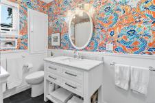 The stunning 2018 kitchen features solid wood cabinetry by Victoria Specialty Hardware, high-end AEG induction cooking, heated quartz countertops & ingenious storage. Sun-drenched spaces stay comfortable yr-round w/ a 2022 Daikin heat pump.