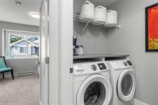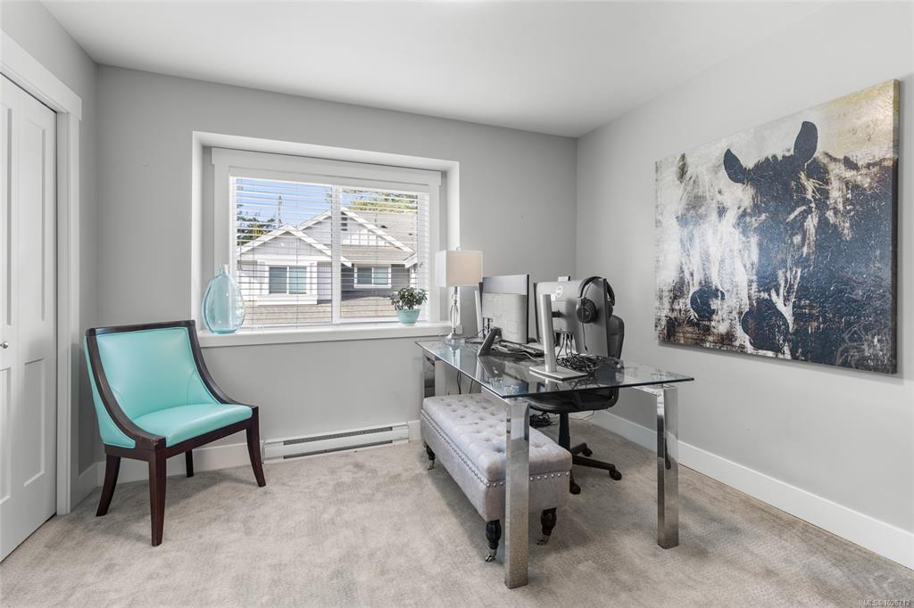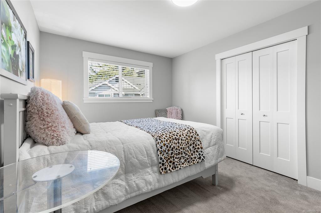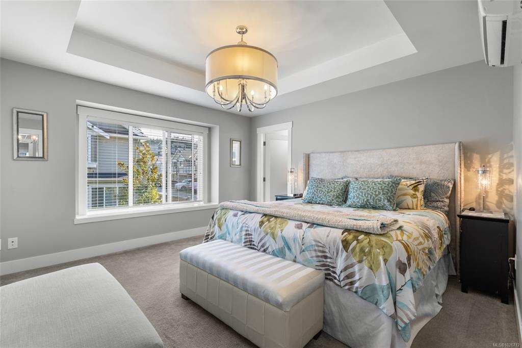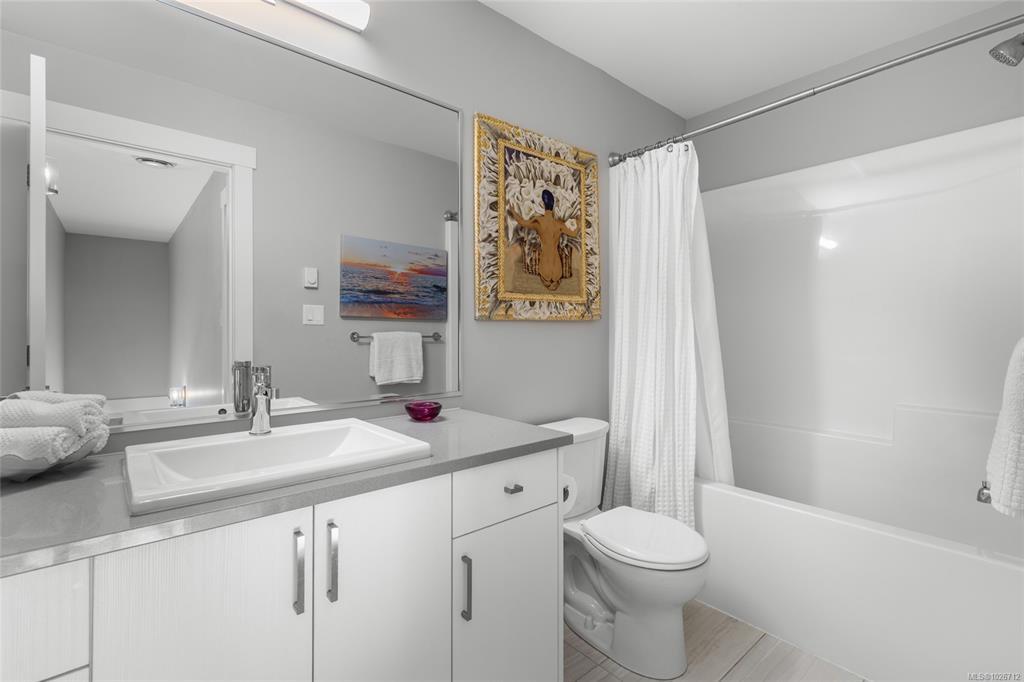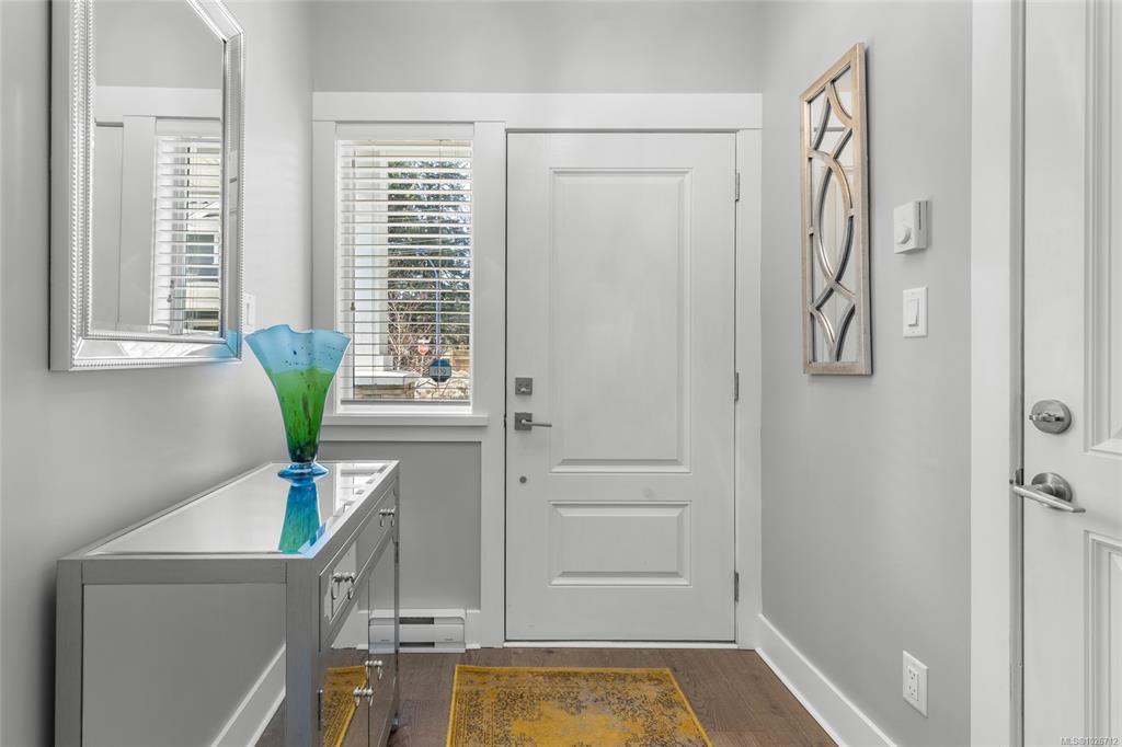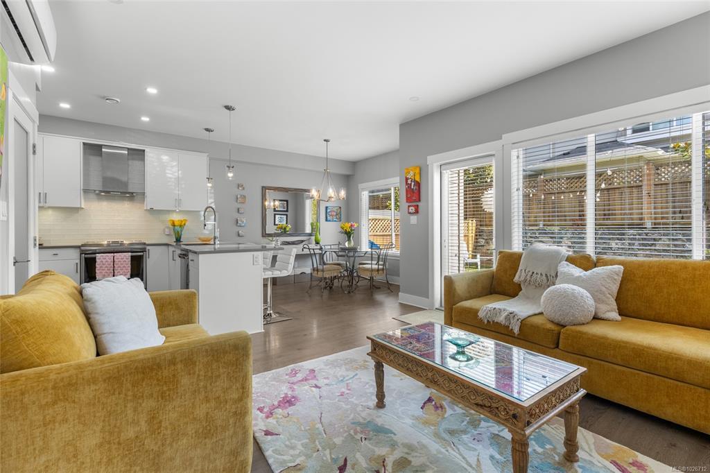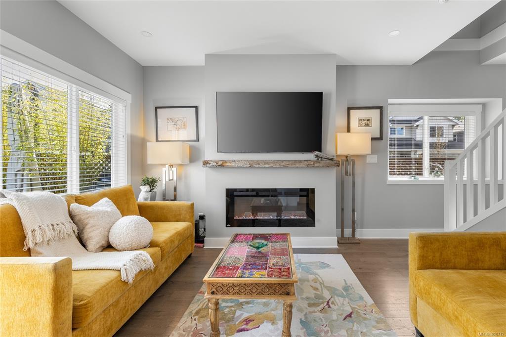 This beautifully designed end-unit townhome in Langford’s highly sought-after Happy Valley offers 3 bedrooms, 3 bathrooms, and a double car garage with built-ins. Designed with comfort and functionality in mind, the main floor features an open-concept layout with 9-foot ceilings and a stunning kitchen complete with high-end appliances, quartz countertops, and access to the fully fenced, sun-filled backyard. Upstairs, you’ll find three generous bedrooms, including a spacious primary suite with a walk-in closet and an ensuite with double sinks. The laundry is conveniently located on the upper level alongside an additional full bathroom. Built to Green Platinum standards with an insulated concrete foundation and shared wall, it provides superior safety, soundproofing, and outstanding energy efficiency. Ideally situated close to schools, parks, and amenities, this home offers the perfect blend of thoughtful design and unbeatable location.