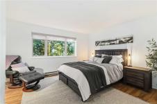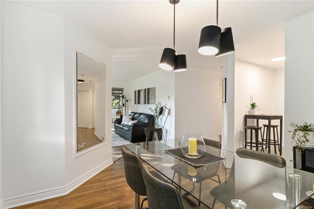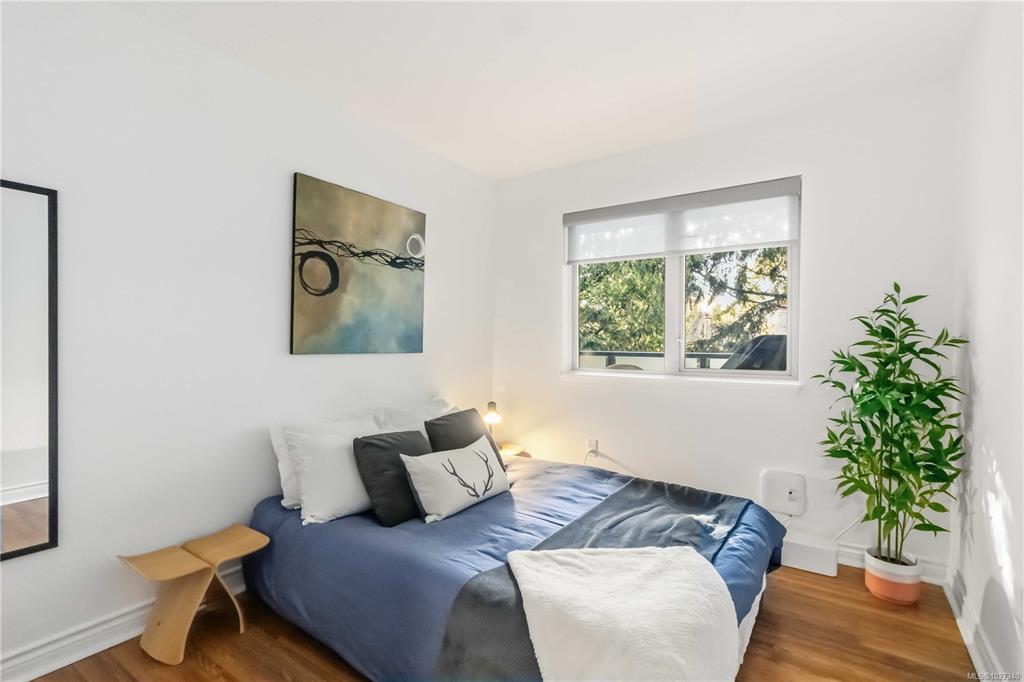 Welcome to this exceptional two-bed condo where space, light & location come together beautifully. Offering over 1,000 sq ft of thoughtfully designed living space on the quiet SW corner, this suite enjoys peaceful outlooks & privacy. Expansive windows fill the living & dining area with light, while a charming wood-burning fireplace adds warmth. Sliding doors open to a large balcony, perfect for morning coffee or evening unwinding. The spacious kitchen connects effortlessly to the dining area, creating a functional, inviting layout. The oversized primary bedroom is a true retreat with a walk-through closet, bonus vanity sink & convenient access to the main bath. A second bedroom offers flexibility for guests or a home office. The suite includes in-suite laundry with extra storage, while the professionally managed, pet-friendly building offers secure underground parking, storage locker, bike storage & guest accommodations. All just minutes from Fernwood Village, DT & the Inner Harbour.